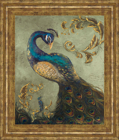 22x26 Peacock On Sage Il By Tiffany Hakimipour - Framed Print Wall Art - Blue
