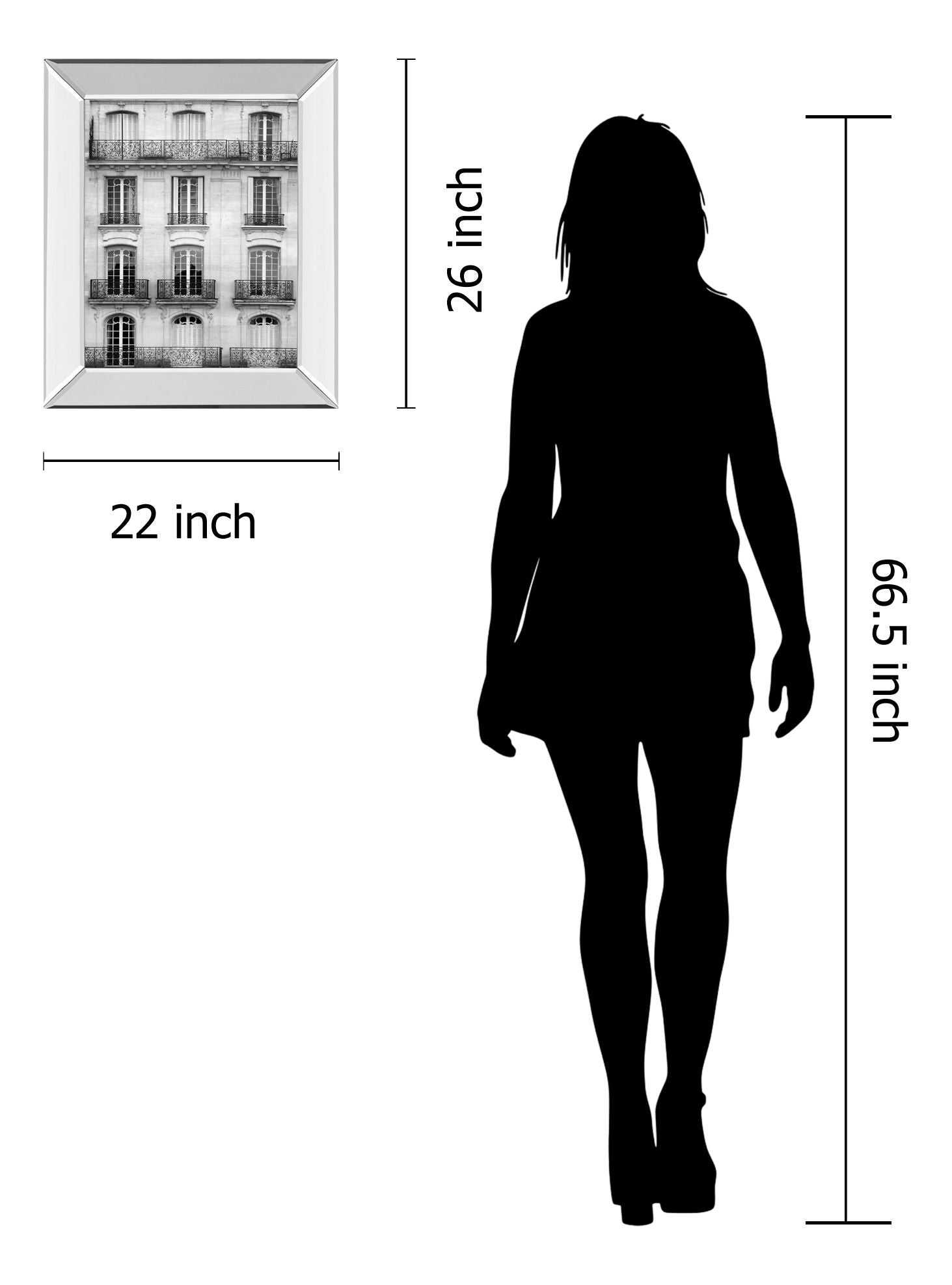 Step into a moment of refined urban beauty with this striking black-and-white photograph, showcasing the intricate details of classic architecture. Encased in a sleek mirrored frame, this piece reflects light and space, adding a luminous touch to any living room or office. The premium real glass protects the photograph’s crisp clarity and depth, while the contemporary mirrored border enhances its timeless elegance. Perfect for those who appreciate the harmony of historic charm and modern design, this framed wall art invites you to admire the artistry of urban landscapes from the comfort of your space.