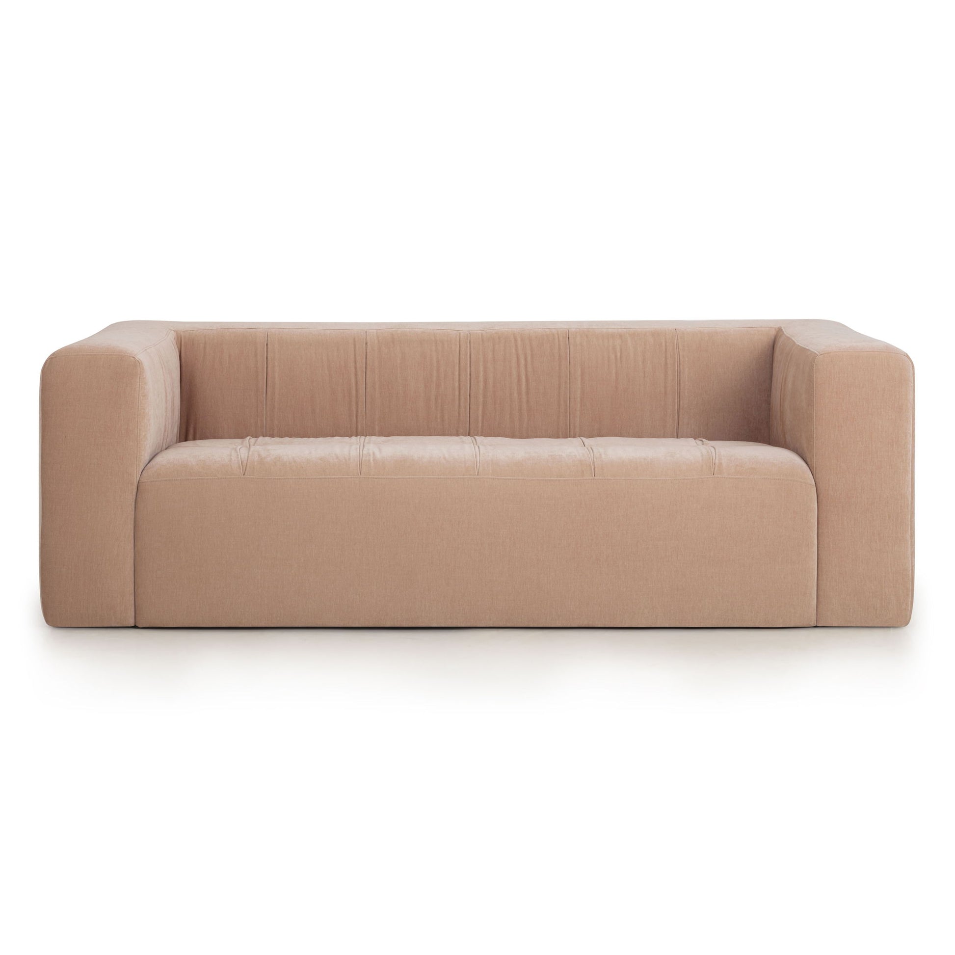 Soft and structured, the Alder Upcycled Chenille Sofa brings sustainability into a sculptural silhouette. Crafted from ruched upcycled velvet spun from reclaimed ocean plastic, its thick padded arms and channel-tufted seat deliver both comfort and a high-fashion finish. Offered in taupe or peach, it's a consciously chic choice for modern living.