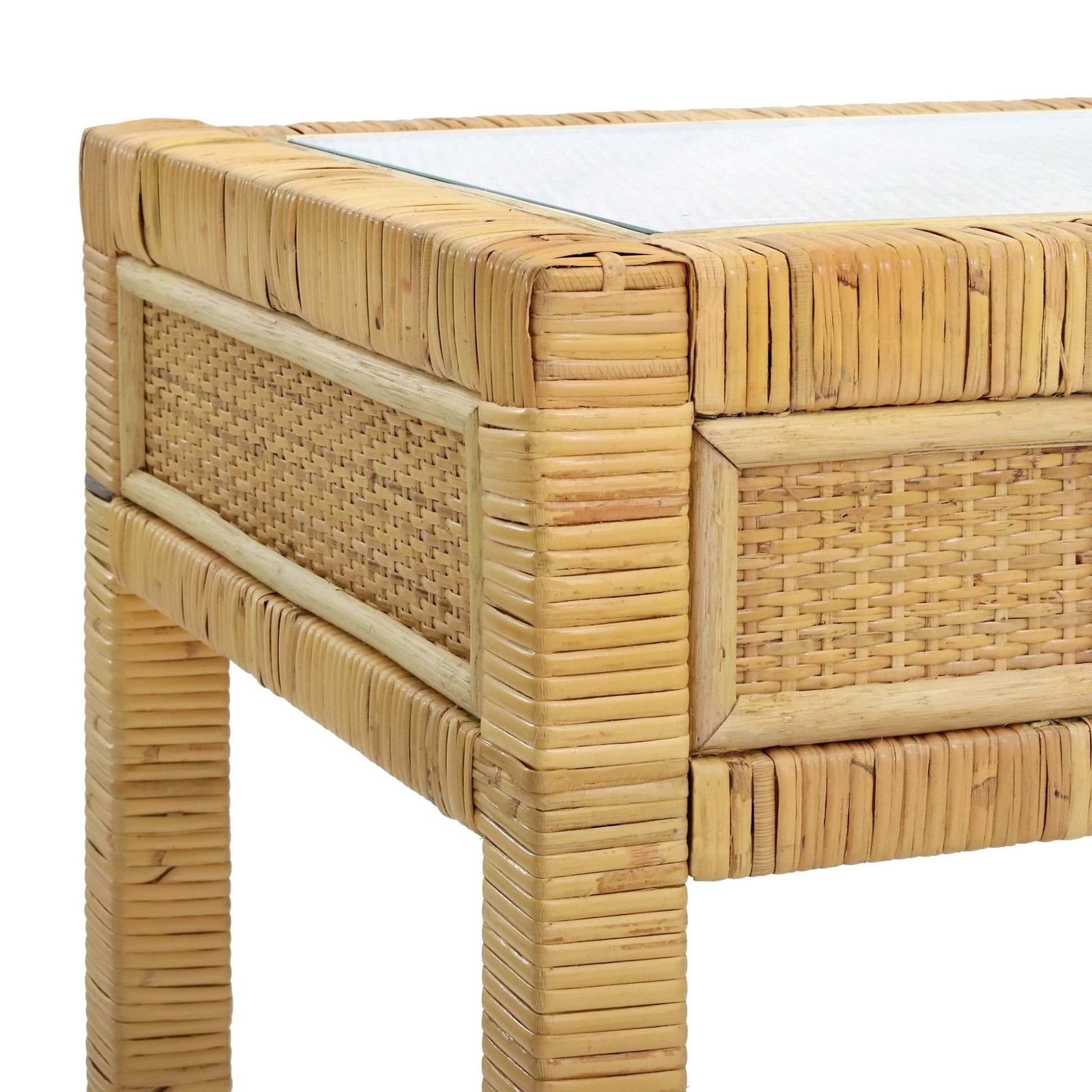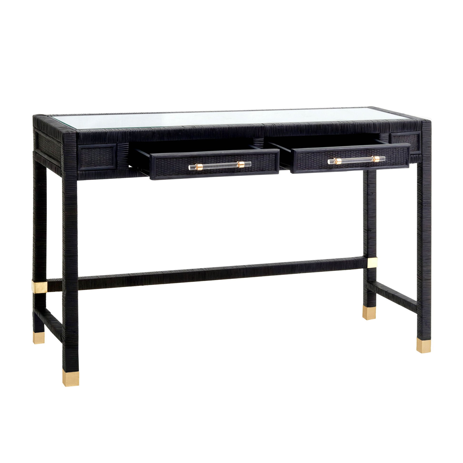 The Amara Rattan Desk is a beautiful and functional piece of furniture that is designed to provide a stylish workspace in any home or office. The desk's spacious glass tabletop provides ample room for a laptop, books, or other work essentials. Available in a warm natural color or a bold charcoal, the Amara adds a modern touch and texture to any space.