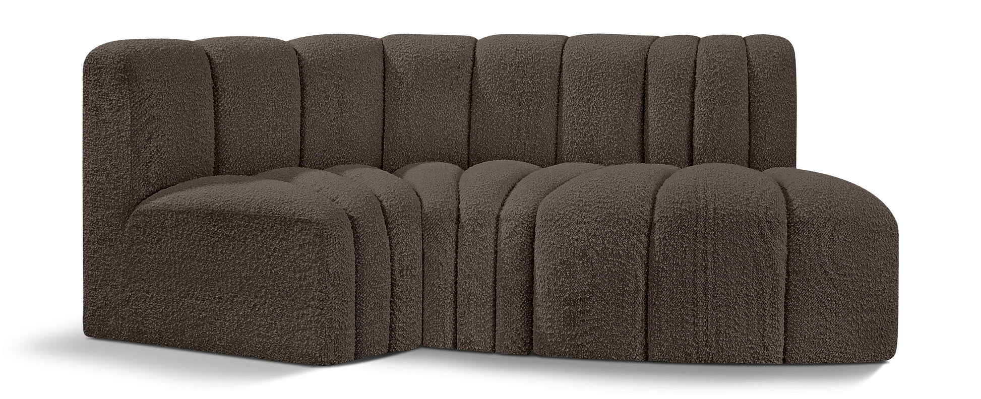 Arc - Boucle Fabric 3 Piece Modular L-Shaped Sofa - Brown
