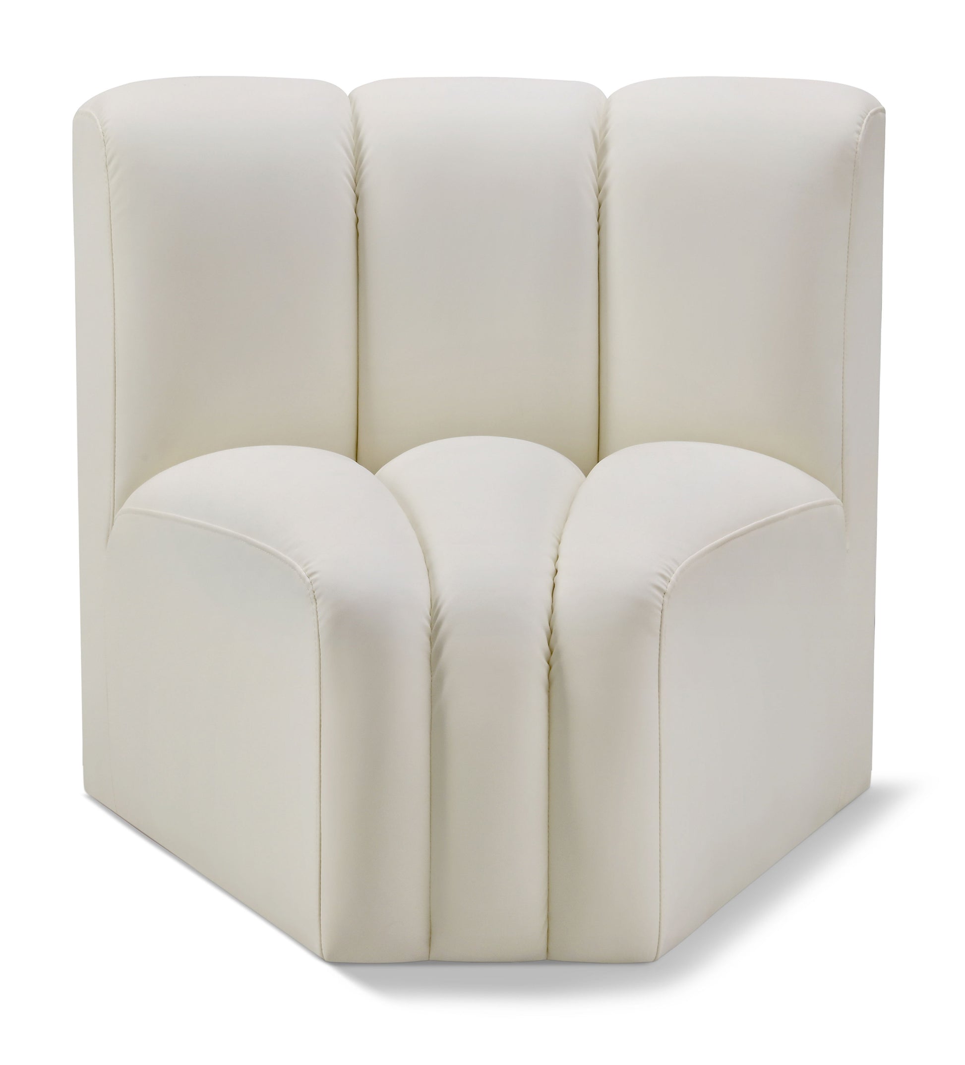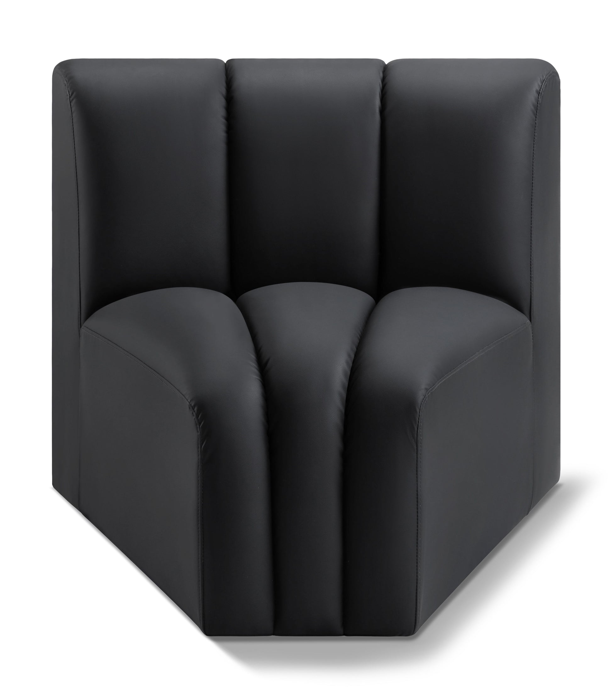 Unleash modern opulence with the Arc Vegan Leather Curved Corner. Crafted for the modern connoisseur, this chair injects an air of refined luxury into any space. Its sleek silhouette, upholstered in supple vegan leather, exudes timeless sophistication while the deep channel tufting adds textural intrigue, further elevating the chair's visual appeal. The modular design makes it a versatile chameleon, effortlessly adapting to your evolving needs and preferences. Whether you envision it gracing a chic living room corner, basking in the glow of a bedroom window, or adding a touch of drama to a home office, the Arc seamlessly complements your unique interior aesthetic.