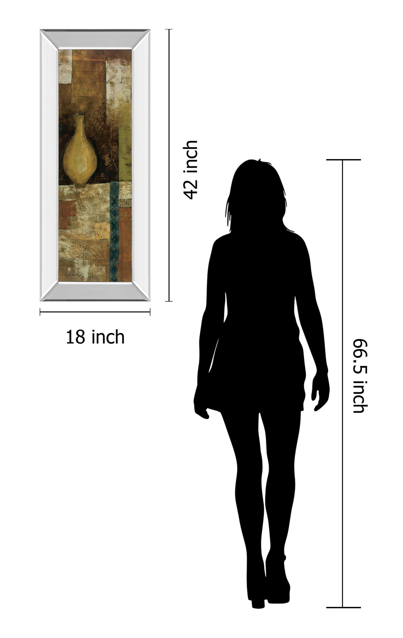 Golden Vessel captures the essence of rustic charm through a harmonious blend of warm earth tones and textured abstract forms. This vertical composition centers on a softly glowing vessel, surrounded by layered patches of ochre, brown, and muted green, evoking a sense of quiet reflection and timeless beauty. Encased in a sleek mirrored frame, the piece not only protects the artwork with premium real glass but also amplifies light, adding a subtle brilliance to any living room, office, or bedroom. Ready to hang and thoughtfully crafted, this artwork invites you to bring a sophisticated yet inviting atmosphere into your space.