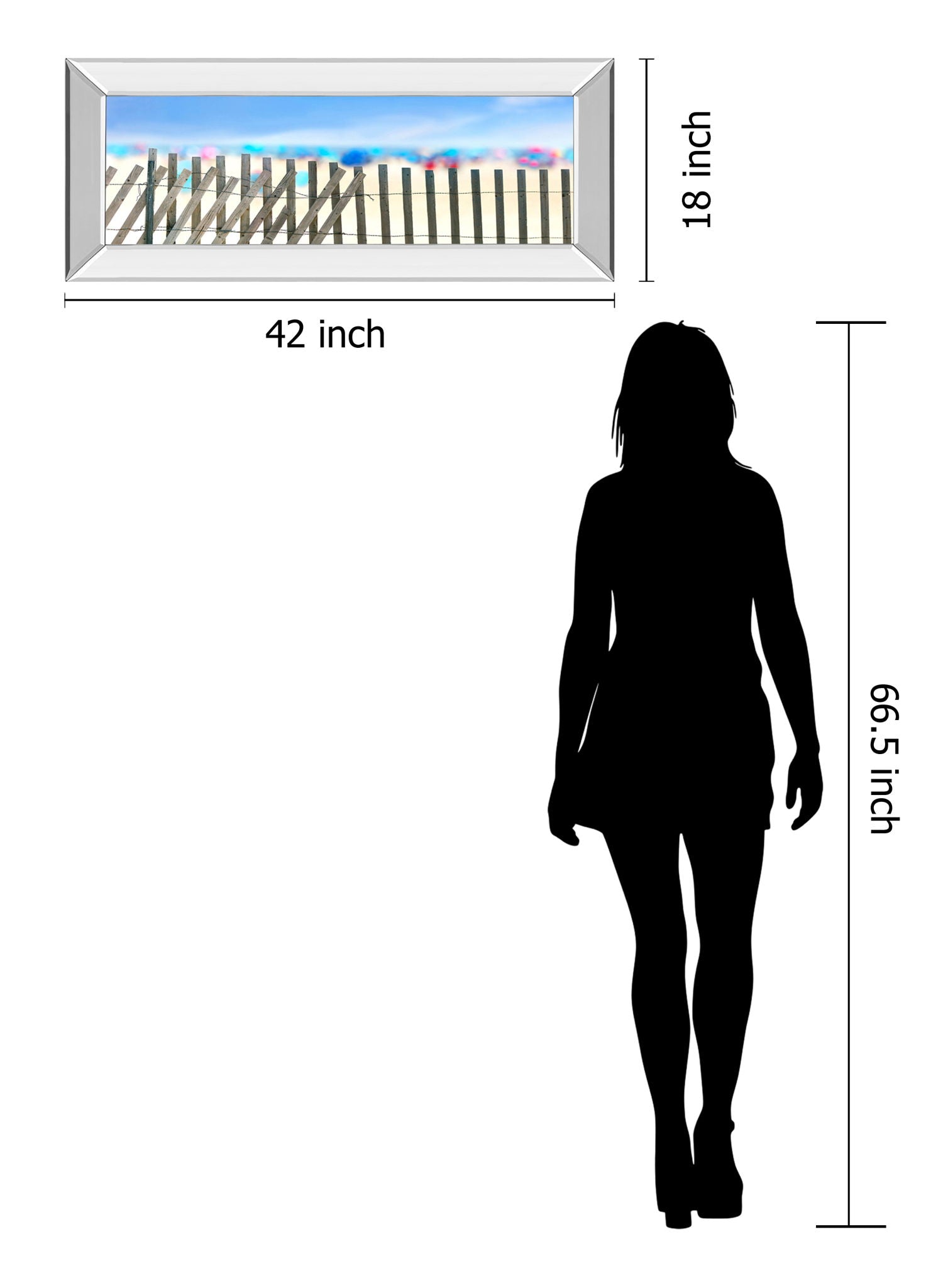 Step into a tranquil beachside escape with this captivating coastal fence scene, where weathered wooden posts stand against a soft sandy backdrop under a clear blue sky. Encased in a sleek mirrored frame, this piece reflects light beautifully, adding depth and a modern touch to any space. Printed on premium paper and protected by crystal-clear glass, it invites the serene calm of the shore into your living room, bedroom, or hallway, blending nature’s peaceful charm with contemporary elegance.