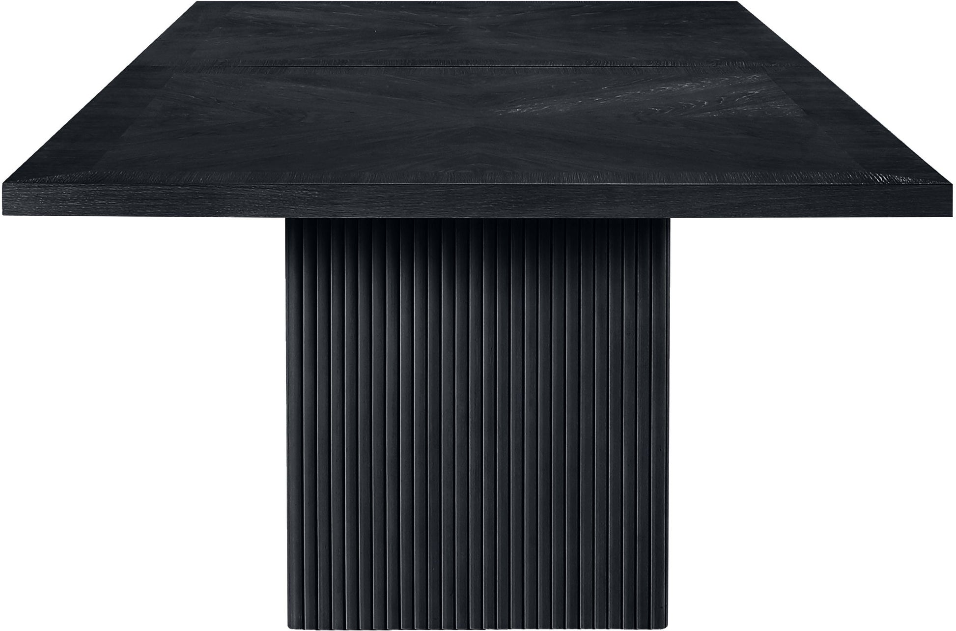 Even the smallest, most intimate dinner feels like an event when you're seated at this Belinda black modular dining table. Crafted with a solid wood base and a black finish oak wood veneer MDF top, its square top with fluted base exudes contemporary charm. The table top's thickness and natural wood grain variations add unique character, ensuring each piece is one-of-a-kind. Modular to create infinite configurations, it blends functionality with style for memorable dining experiences in any space.