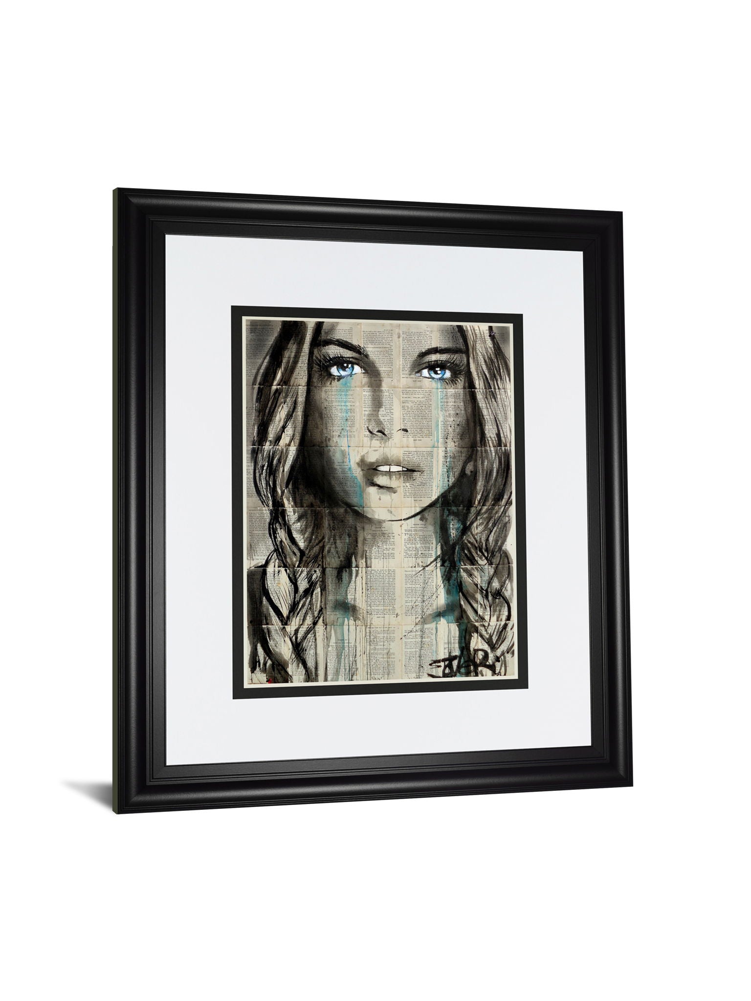 This evocative piece, titled “Blue Shore,” portrays a woman with piercing blue eyes shedding delicate tears, rendered in a contemporary graphic style. The artwork’s unique backdrop of vintage book pages adds layers of texture and narrative depth, inviting viewers to explore the emotional complexity beneath the surface. Housed in a sleek black frame with double matting and premium glass, this framed wall art transforms any living space into a refined gallery setting, offering a poignant blend of sophistication and heartfelt expression.