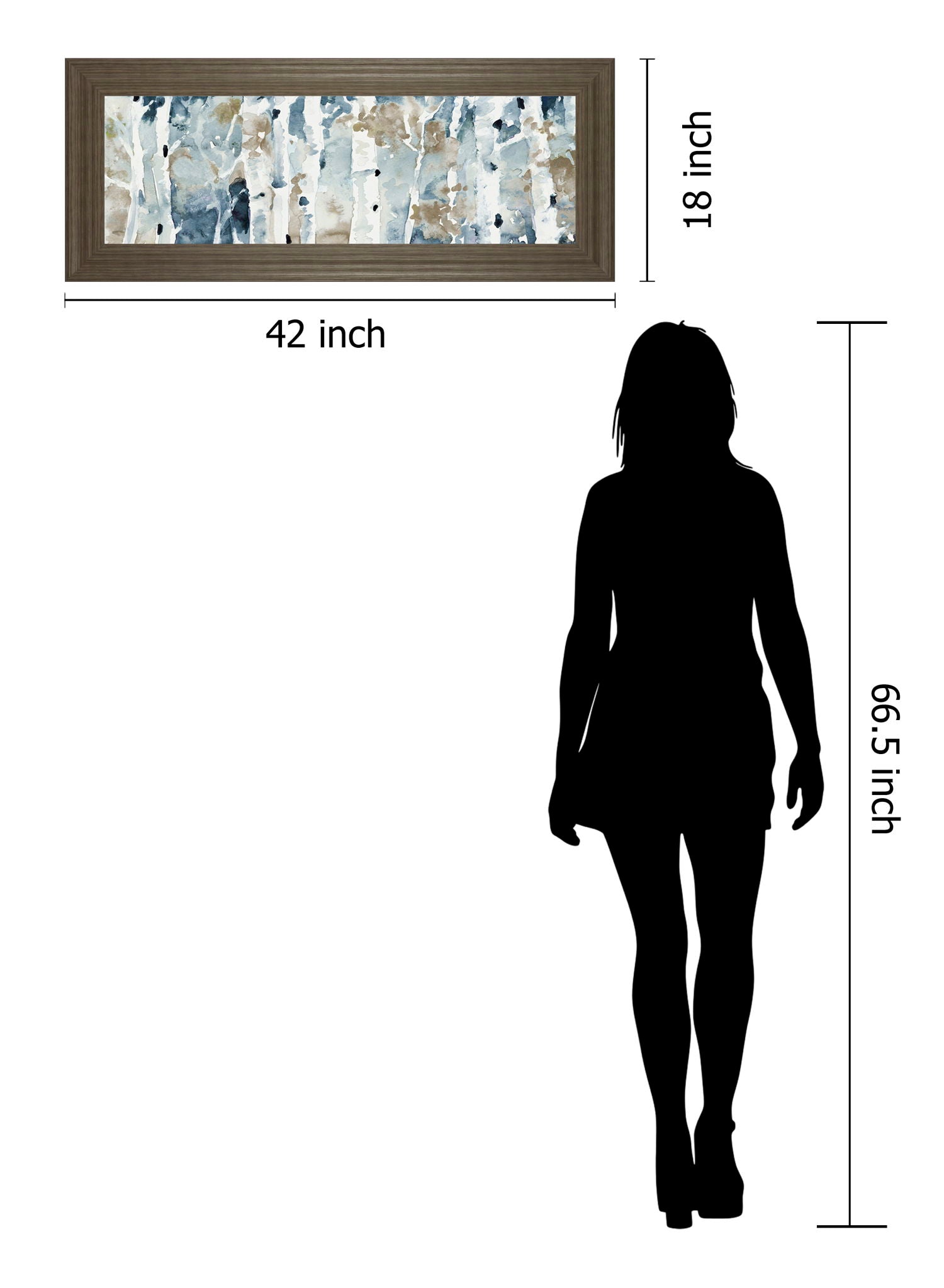 Immerse yourself in the tranquil beauty of nature with this serene woodland artwork. Featuring a delicate watercolor depiction of birch trees in soft blues, browns, and whites, it captures the peaceful essence of a quiet forest. The elegant tranquil ash frame enhances the calming palette, making it an ideal addition for living rooms, offices, or bedrooms seeking a touch of sophisticated natural charm. Crafted with premium mixed media and protected by real glass, this piece offers vibrant color clarity and durability. Ready to hang and proudly made in the USA, it invites a timeless sense of calm and elegance into your home.