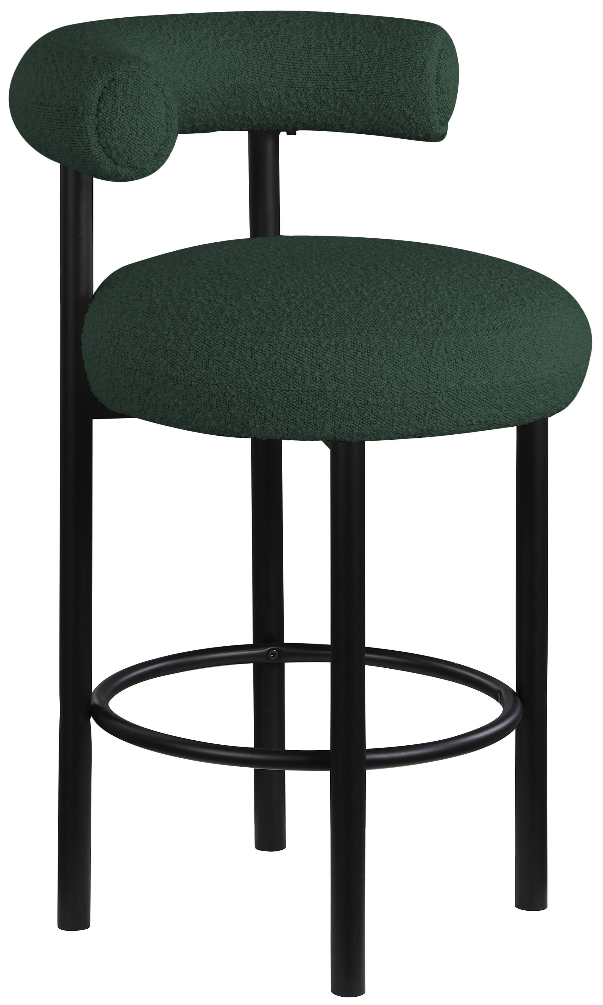 Give your kitchen counter or home bar a fresh face with this Bordeaux boucle fabric stool. This stool features rich boucle fabric upholstery on the curved back and seat, so guests sit comfortably for pancake breakfasts or their favorite spirits. The iron metal frame is durable, tough, and sturdy, so it holds up to long-term enjoyment by family and friends. A matte finish lends the stool an uber modern feel.