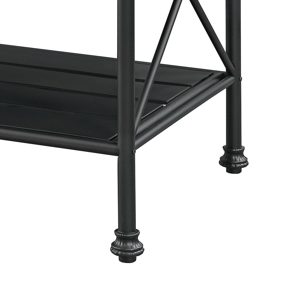 Minimalistic design paired with clean, simple color. The Brahm Kitchen Island gives off a light and airy feel to a compact cooking space. Clean-lined metal frame is topped with a artificial stone top, creating a sleek, modern silhouette that gives your kitchen an open feel. Spacious rectangular table top with two tier shelf provides more countertop space and storage. Use this stylish yet functional addition to complete your kitchen decor.
