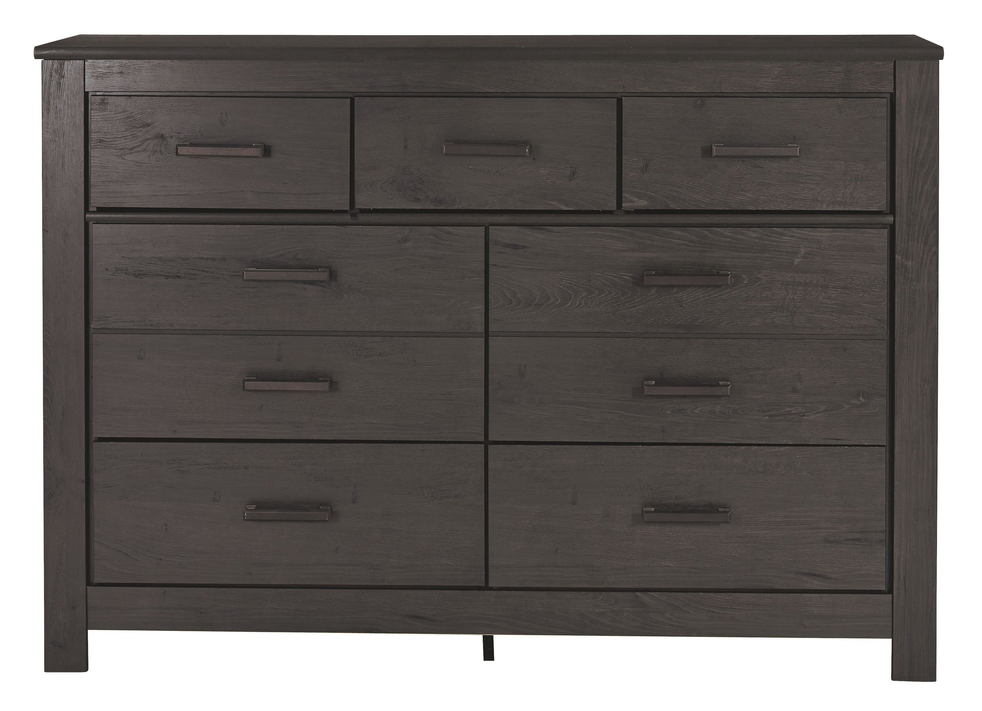 Priced to entice and styled to impress, this dresser makes the most of a clean-lined, contemporary profile. With three drawer sizes scaled to meet your needs, the design merges cool form and practical function. Replicated oak grain effect gives the modern finish warmth and character. Linear pulls are a sleek touch.