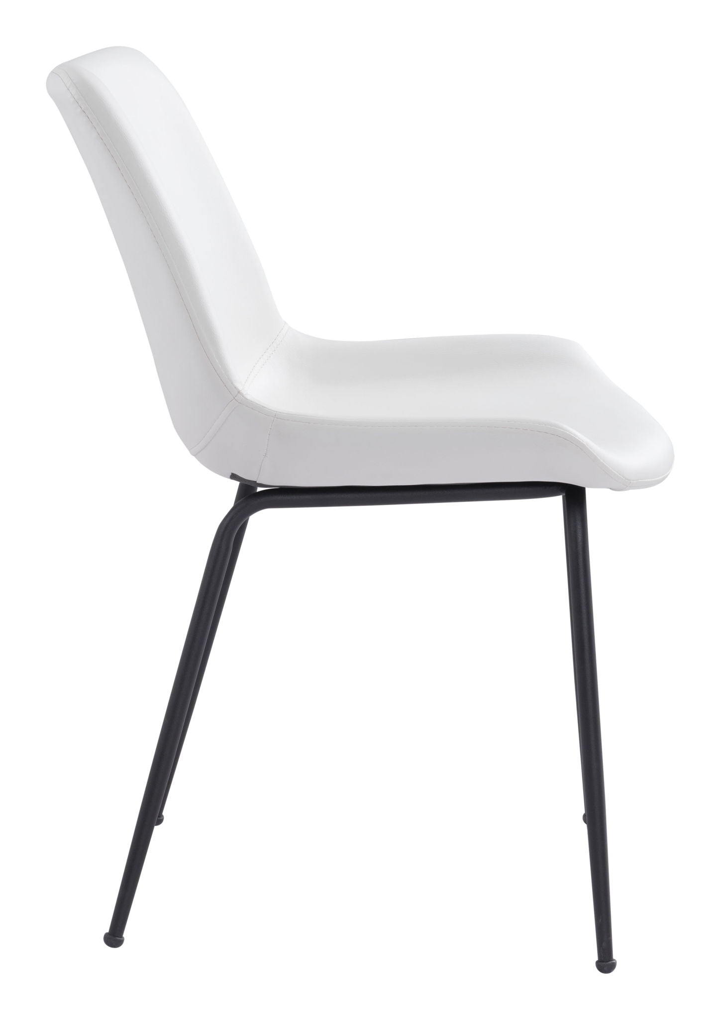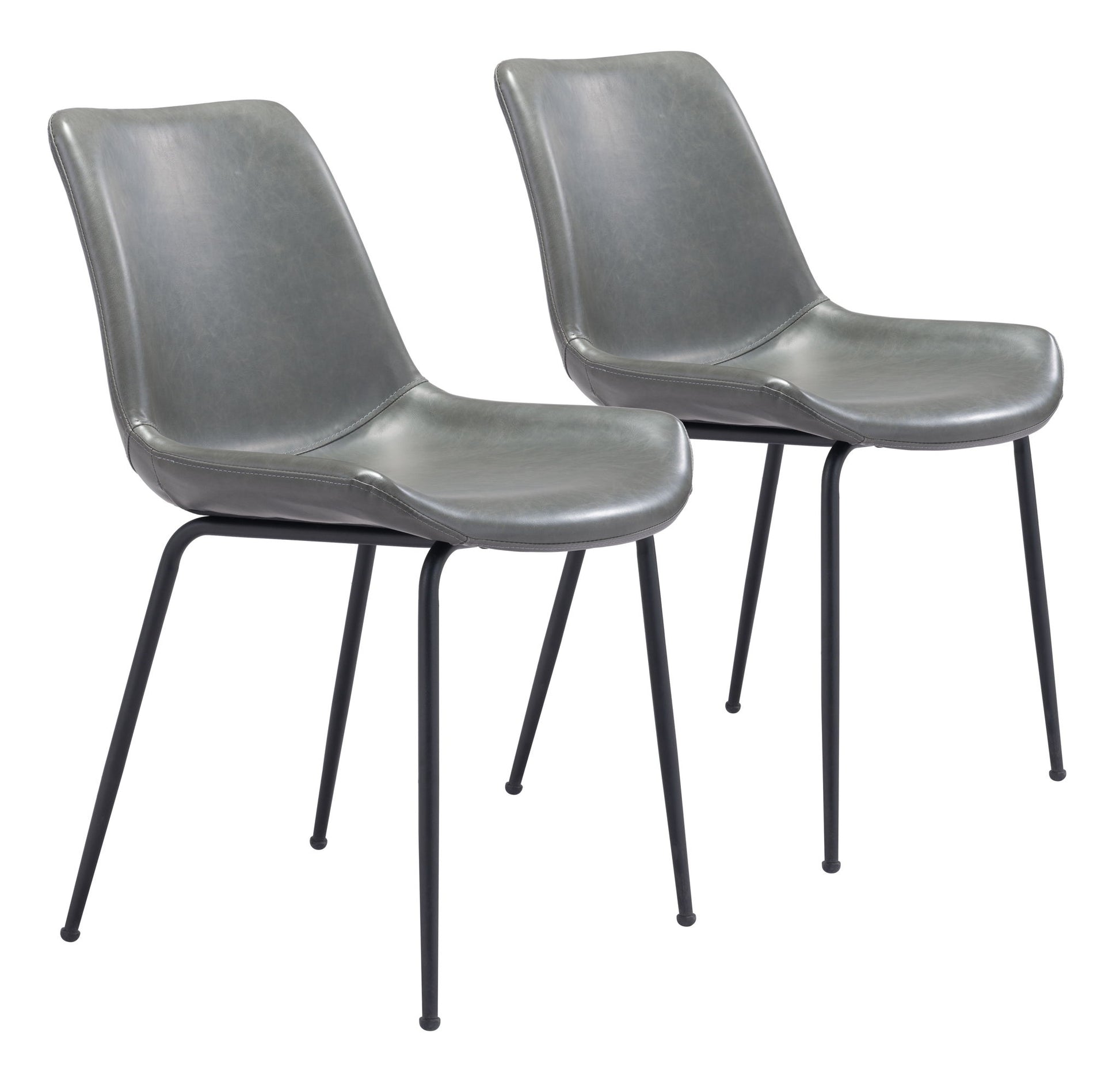 The Bryon Chair has mid century modern urban lines and looks great in any space. With a heavy duty vinyl covering and a sturdy steel frame, this chair fits in any dining room, home office, or even as a bedroom accent chair.