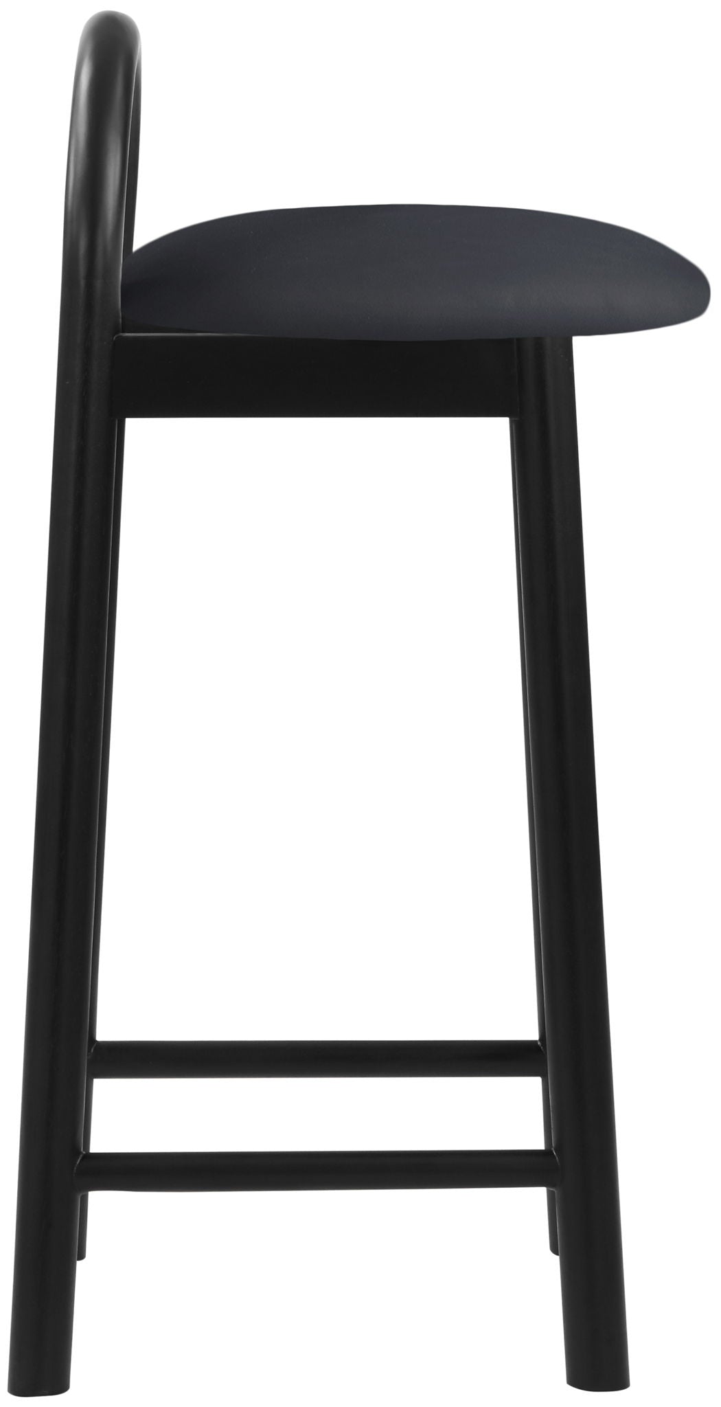 Make them want to stay 'till closing time when you add one or more of these Calvin vegan leather counter stools to your home bar or kitchen counter. These handsomely rugged stools have an uber modern look to them, making them well at home in a variety of decorative settings. The vegan leather seat is soft and comfy, so folks want to sit a spell and enjoy themselves. The black finish solid wood frame is durable and sturdy, and there's room to rest your feet around the bottom perimeter for added usability and comfort.