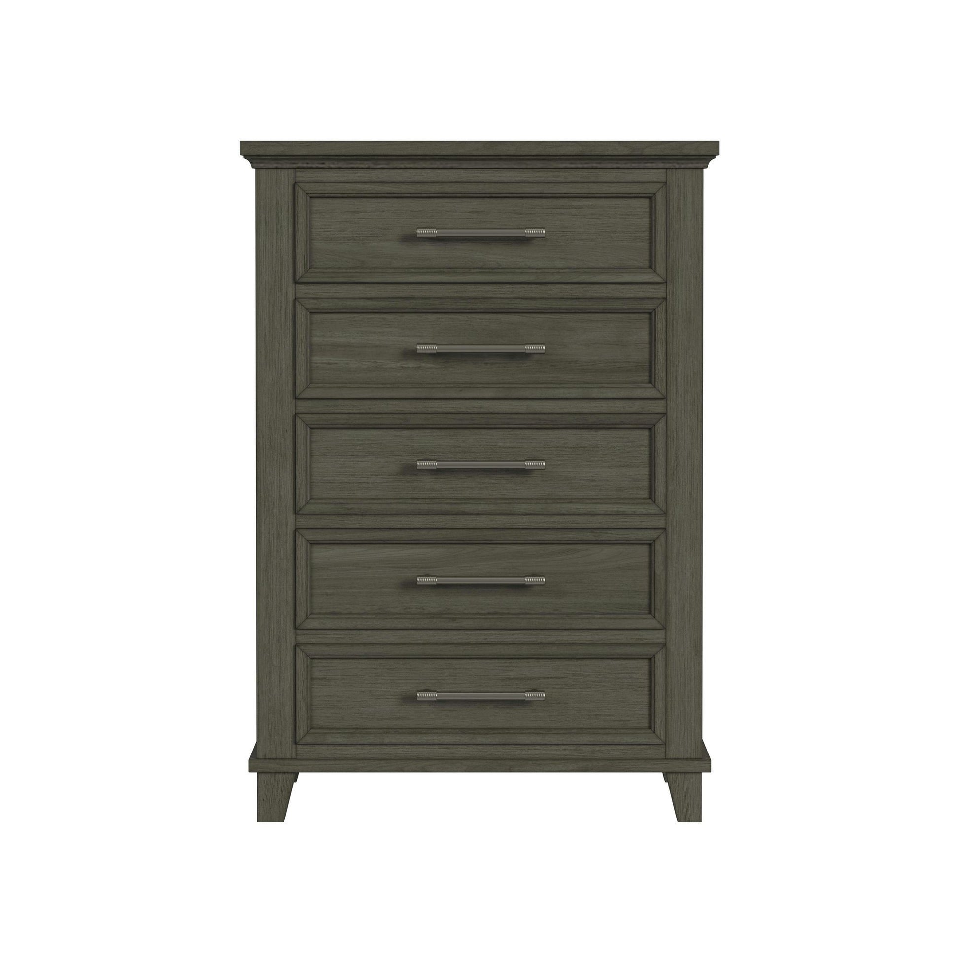 The Canterbury Chest exudes timeless elegance with its sleek smooth finish on rich veneer, offering a sophisticated blend of modern and classic design. Each drawer glides effortlessly and quietly, thanks to the ball bearing drawer glides, ensuring a smooth and luxurious experience every time. Refined brushed nickel handles add a touch of sophistication, elevating the dressers overall aesthetic. Stylish inset panel fronts provide captivating visual appeal, making this chest a stunning focal point in any bedroom. Completing the design are the sophisticated beveled edges that add an extra layer of charm and refinement. The Canterbury Chest is the perfect blend of functionality and elegance, bringing a sense of style and luxury to your living space.