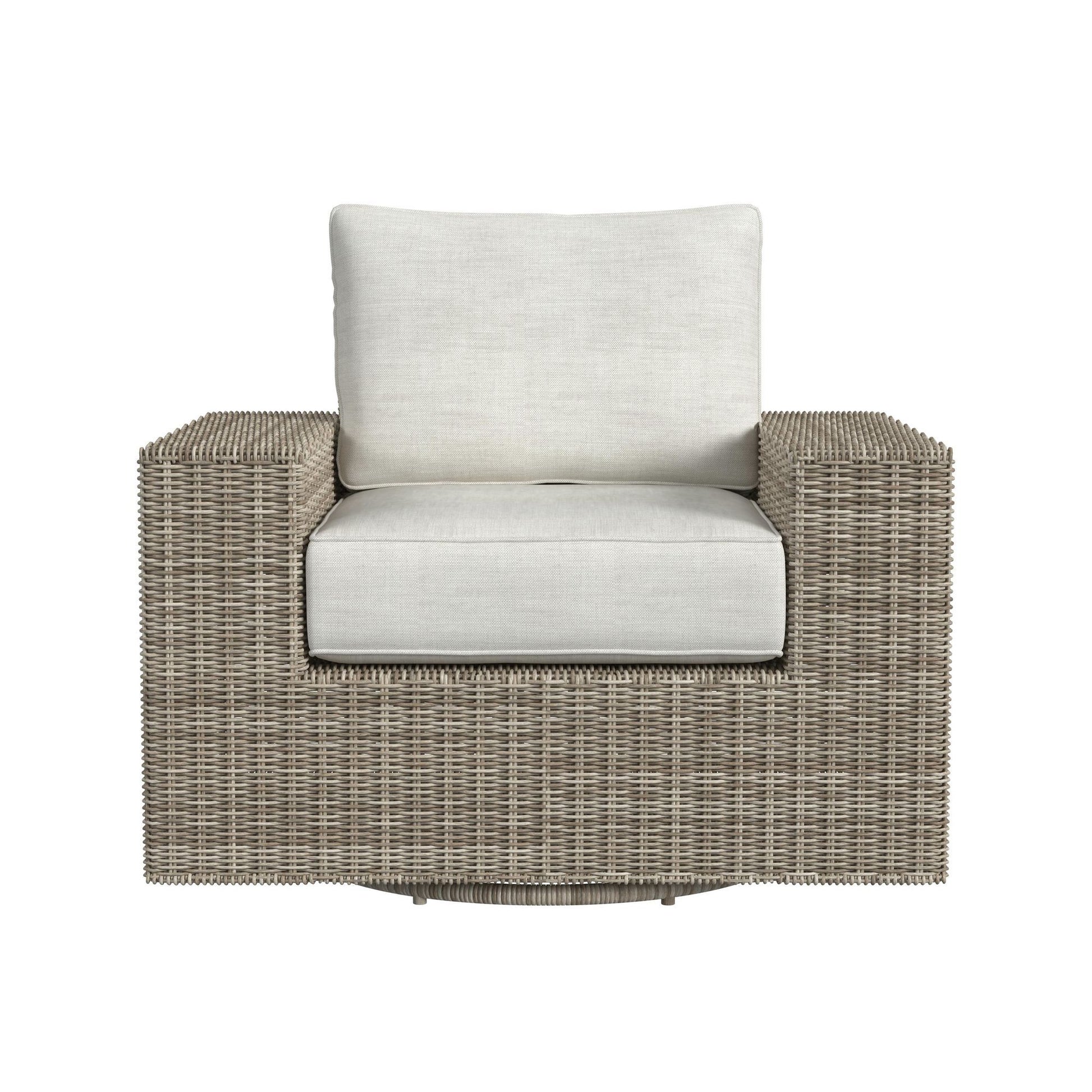 The Carmona Swivel Chair is the perfect accent for your patio’s décor. It’s neutrally toned, woven detailing makes this piece easy to pair with various color palettes and adds charming Bohemian style, while the swivel base eases movement, enhancing relaxation. Weather-resistant olefin upholstery is optimal for outdoor use and covers cushions with supportive memory foam, making this piece the perfect spot for outdoor relaxation. For a stylish, versatile, and cozy addition to your outdoor space, the Carmona Swivel Chair delivers.
