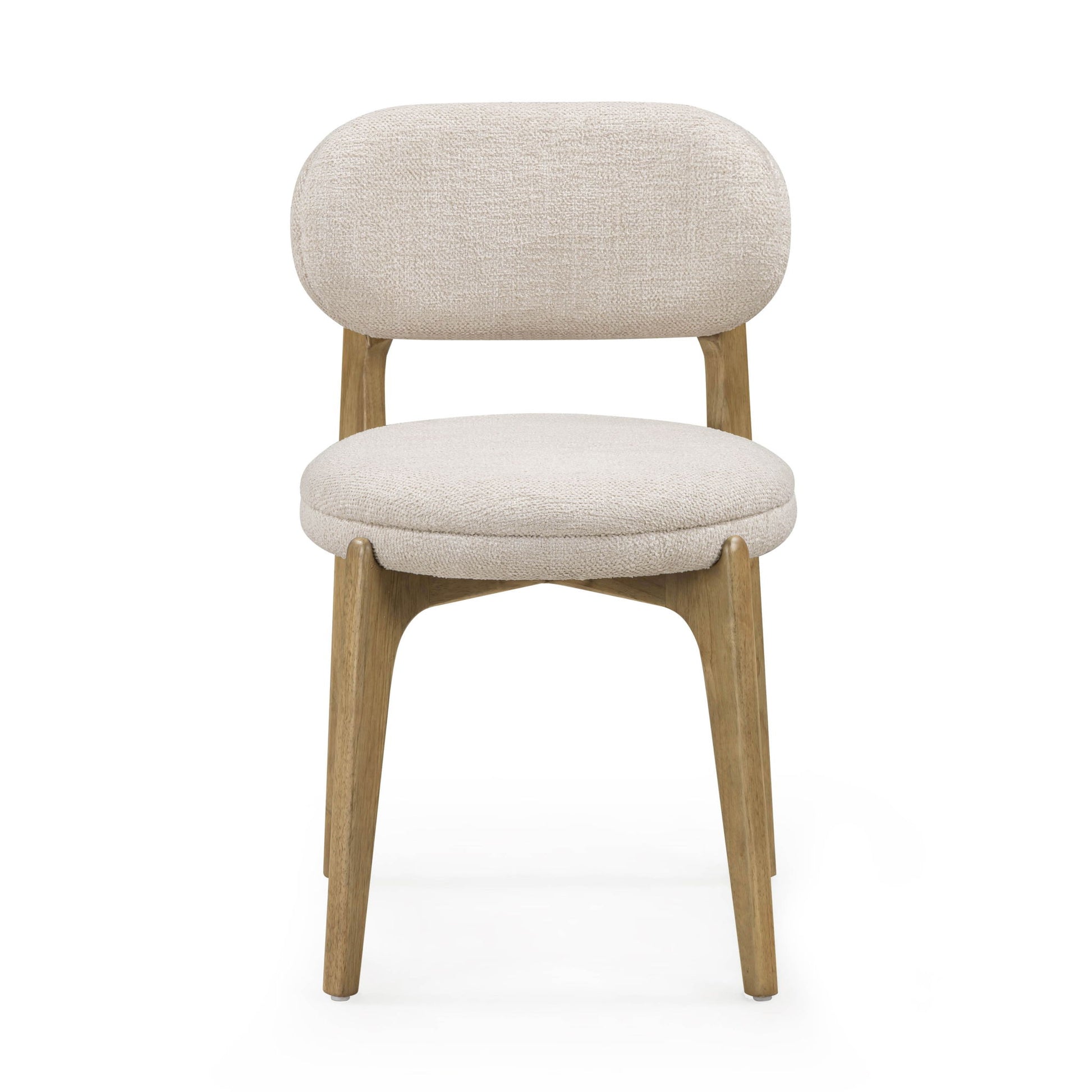 The Carnation Dining Chair and Counter Stool bring a fresh take on mid-century style, pairing sculptural lines with contemporary fabrics. Offered in cream or green textured performance weave or smooth cream vegan leather, each rests on a solid wood frame built for lasting comfort, resisting spills and wear while adding timeless sophistication to your dining space.