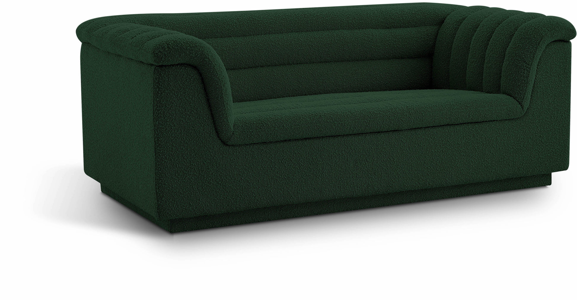 Give your room a much-needed rehab when you bring home this Cascade boucle fabric loveseat. The elegantly attention-grabbing design features a modern profile with curved arms deep horizontal channel tufting, so it wows from all angles. Upholstered in rich boucle fabric, this seat quickly becomes everyone's favorite spot for curling up with a good book or smart device. Thick foam padding ensures a cozy, body-hugging experience. while you watch TV or just relax.