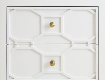 Hardware: Soft Finished Knobs Material: Select Hardwoods, Poplar Solids and Paint Grade Veneer (CA Carb P2 Compliant)Drawer Construction: English Dovetail Fronts, Lap Joint Backs, Dust Bottom on Lowest Level Drawer Guides: Side Mounted, Ball-Bearing Drawer Guides Rachael's Chelsea youth collection is a glamorous, sophisticated grouping that brings her fashion-forward taste to any age. From storage to sleep to study, these modern, intriguing pieces will be loved from a young age to a college dorm room. The clean, transitional lines of the finish are offset with accents and Soft Finish Knob hardware, making each piece as warm and inviting, as it is stylish.
