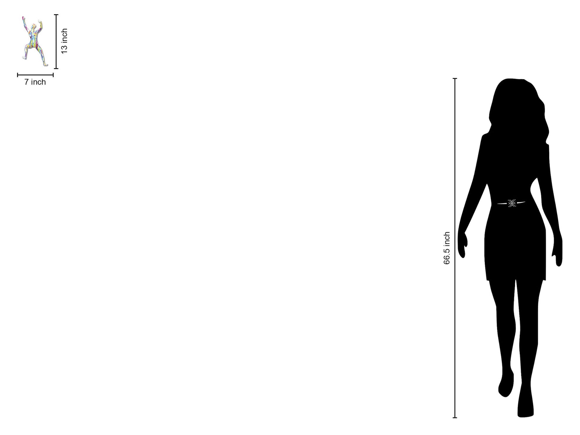 Celebrate contemporary artistry with this vivid multicolor modern woman sculpture, a dynamic piece that brings energy and personality to any space. Crafted from hand-painted polyresin, each figure is uniquely detailed, showcasing flowing streaks of vibrant colors that dance across the form. Designed to hang off the wall or stand alone, it adds playful depth and layered style to living rooms, offices, or bedrooms. Ready to display with professional mounting hardware, this sculpture also supports a meaningful cause by donating a meal to a hungry American child with every purchase.