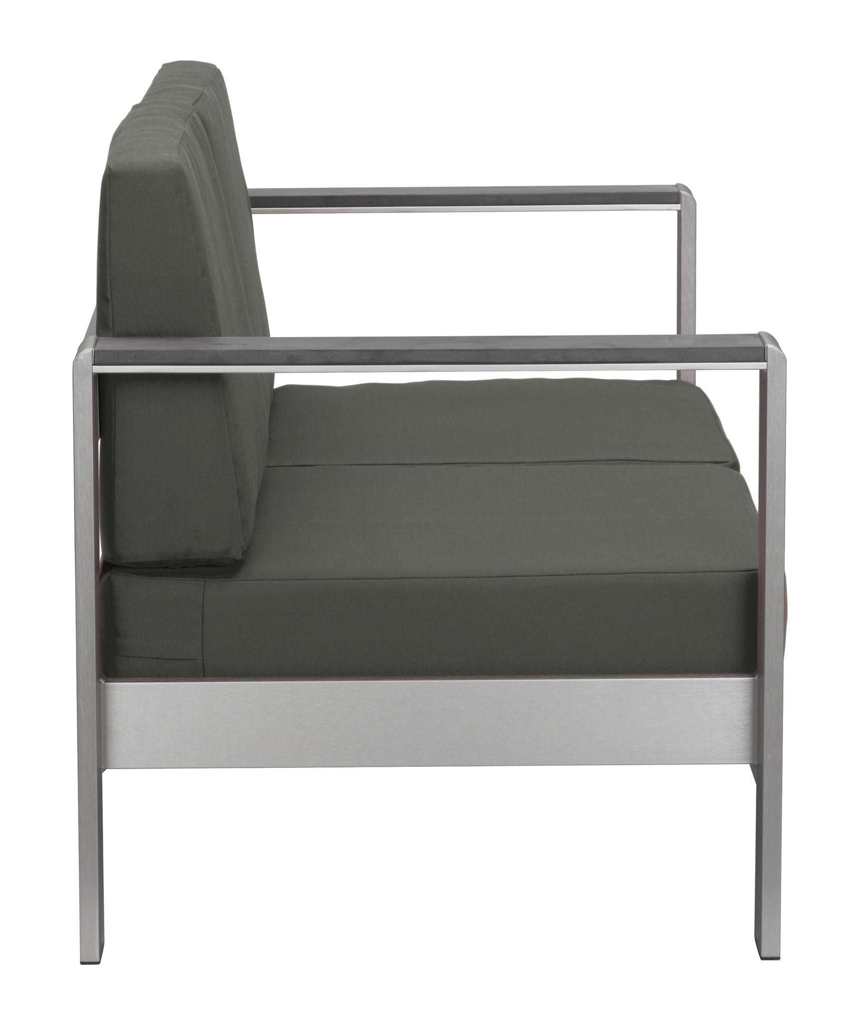 Simple Modern the Cosmopolitan features a sexy bold look to outdoor living with an aluminum frame accented with poly-wood to the tops of each sofa frame. These plush cushions fit perfectly adding extra comfort and bold style. Fabric won’t fade and is resistant to moisture buildup making it perfect for outdoor use. The Cosmopolitan collection includes a sofa, armchair, coffee, and side tables. Cushions are available in orange or grey.