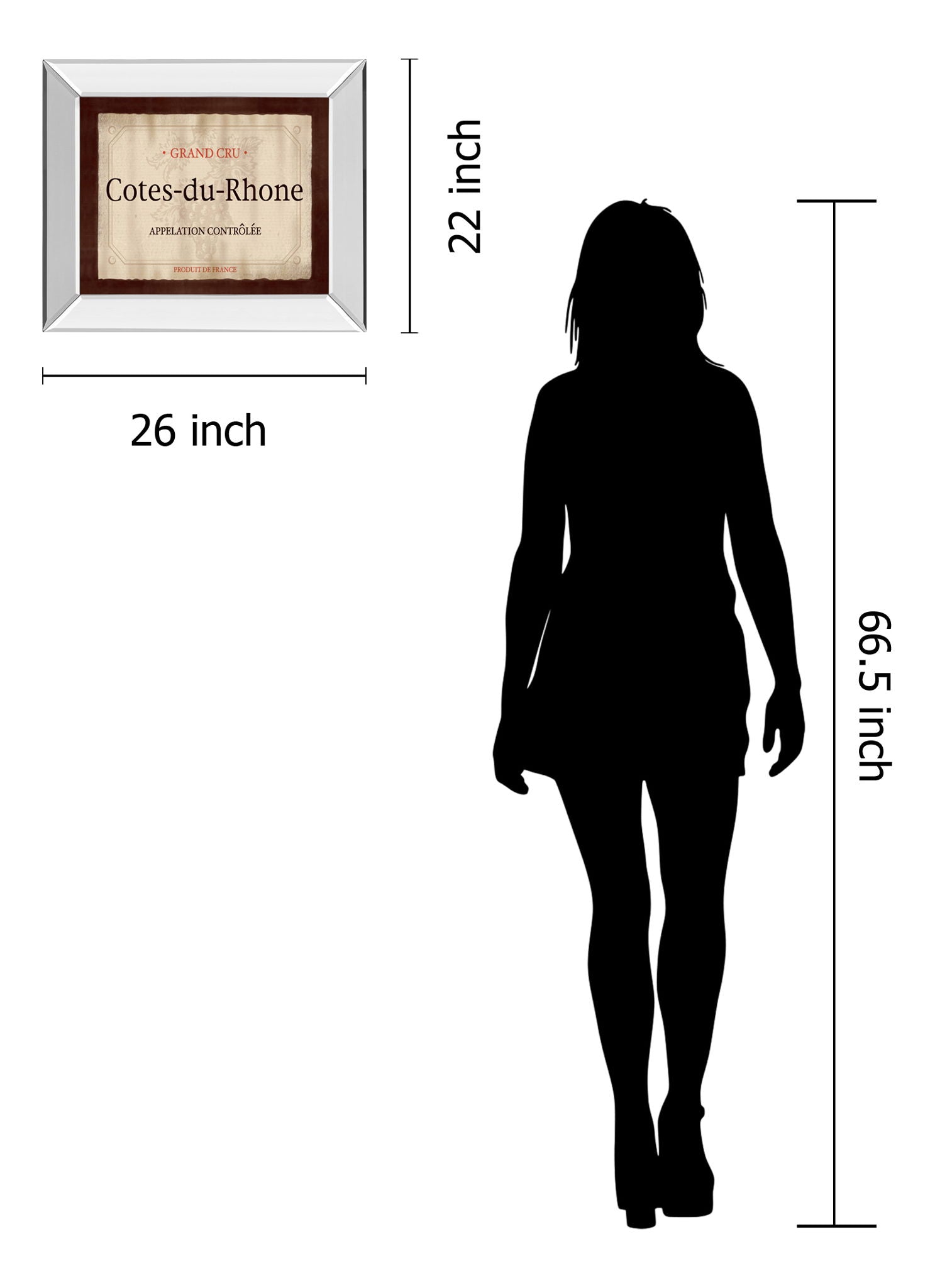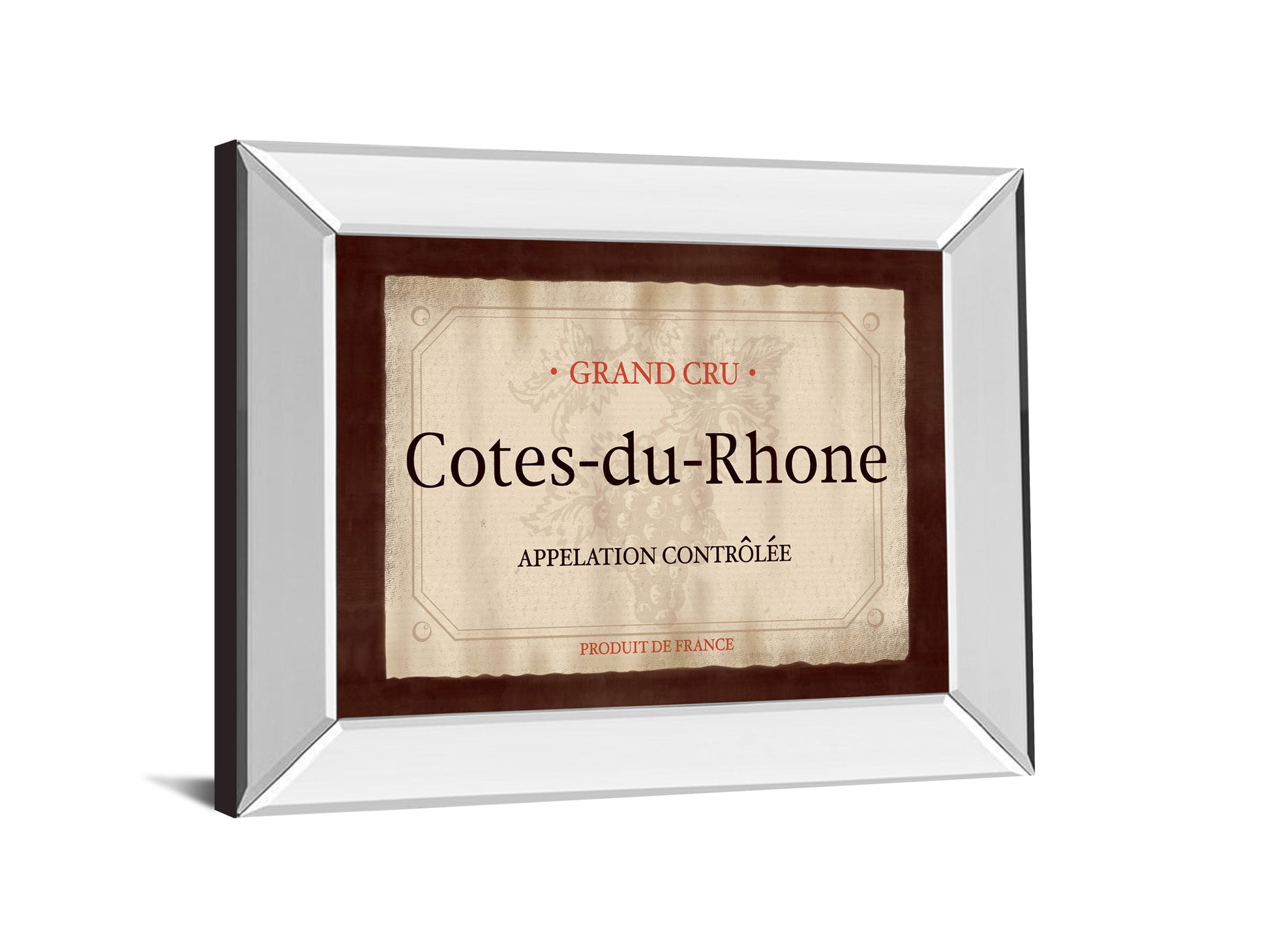 Step into the refined world of French wine with this elegant Cotes-du-Rhone framed wall art. The design features a classic wine label set against a warm, textured backdrop in shades of brown, beige, and cream, accented by rich red and black tones that evoke a timeless charm. Surrounded by a sleek 2.5-inch mirrored frame, this piece not only adds a touch of sophistication but also reflects light to brighten your living room, kitchen, or dining area. Crafted with premium real glass for crystal-clear protection, it’s ready to hang and brings a luxurious shimmer to your space while celebrating the heritage of France’s celebrated wine region.