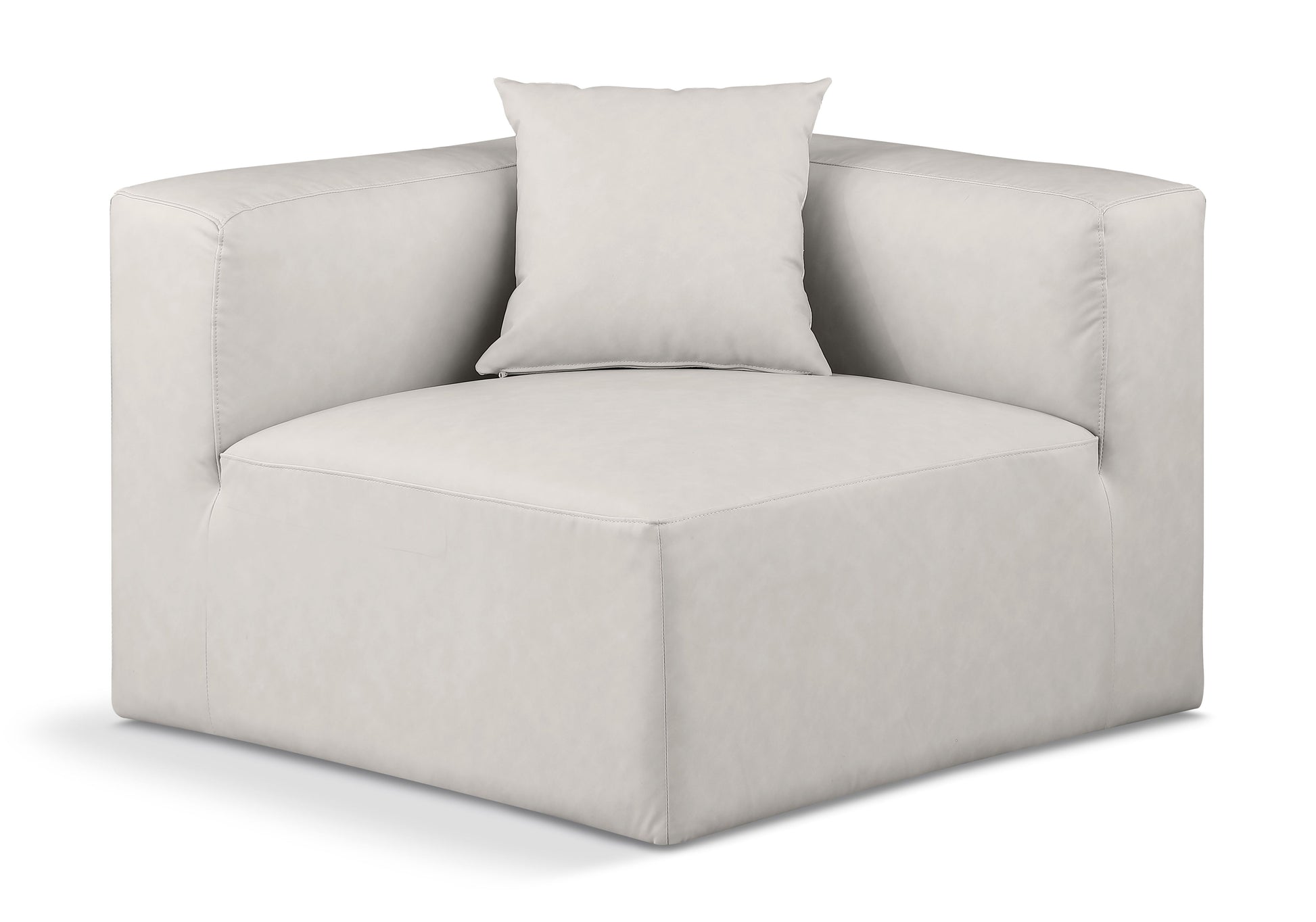 Elevate your space with the luxurious Cube Vegan Leather Corner Chair. This corner chair exudes modern elegance, charm, and comfort making it a perfect addition to any contemporary living space. Its clean lines and cube shape are reminiscent of minimalist design, while the plush vegan leather upholstery adds a touch of luxury and sophistication. The chair's versatile construction and geometric aesthetic seamlessly integrate into various design styles, from sleek living rooms to chic home offices, embodying the essence of modern design and creating a sense of order and tranquility in your space.