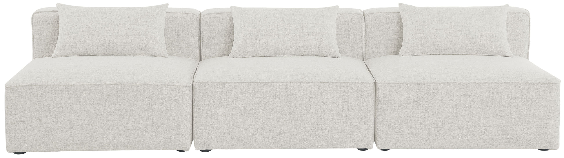 Cube - Linen Modular 3 Piece Armless Sofa - Cream