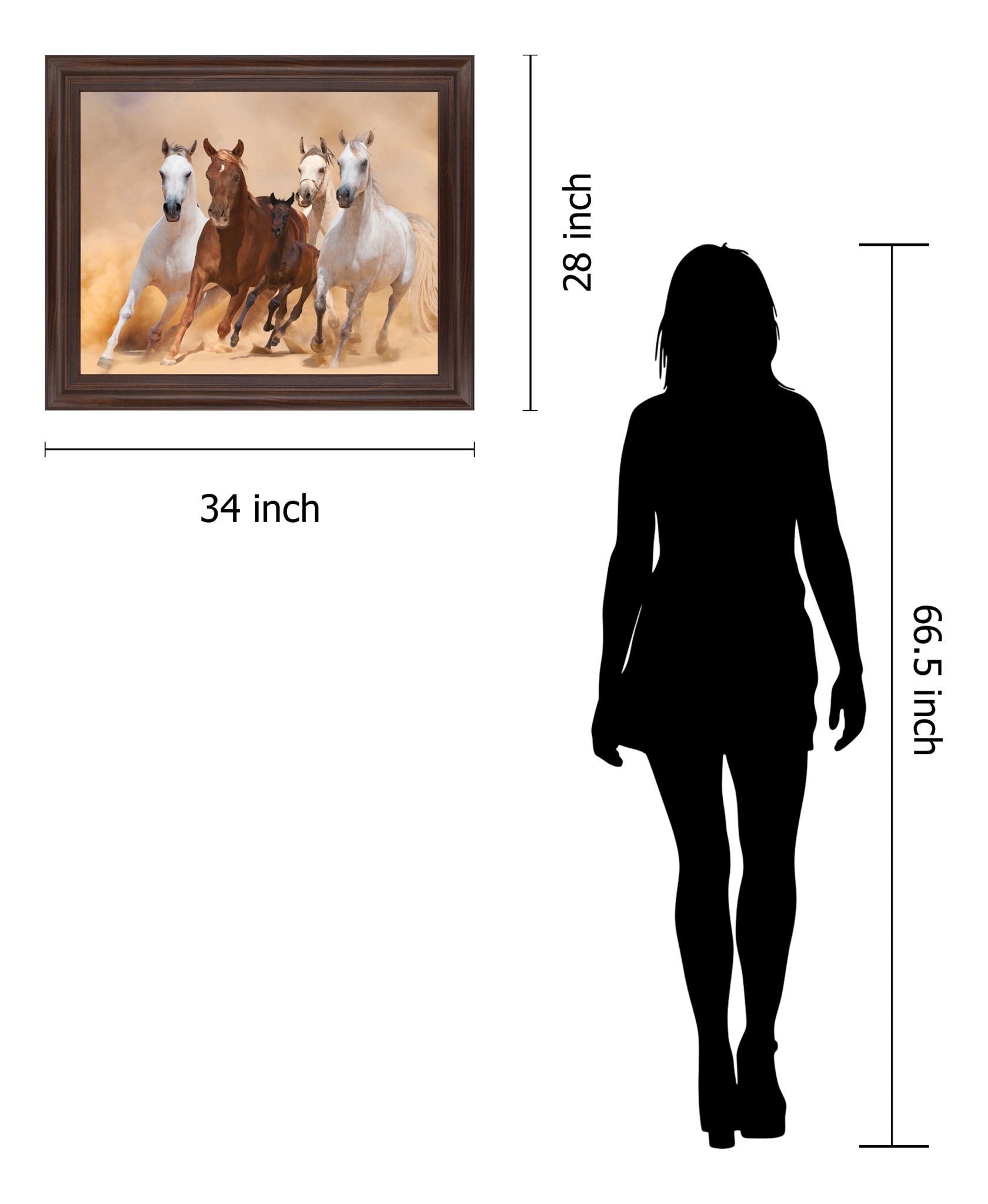 Experience the raw energy and untamed beauty of nature with this captivating framed wall art featuring five horses racing through a dusty landscape. Each horse is rendered with lifelike detail and dynamic motion, evoking a sense of freedom and power that enlivens any space. The warm cinnamon mocha frame enhances the earthy tones, creating a harmonious blend of traditional style and spirited animal imagery. Crafted with premium materials and clear glass, this piece is ready to transform your living room or office into a vibrant haven of natural elegance and movement.