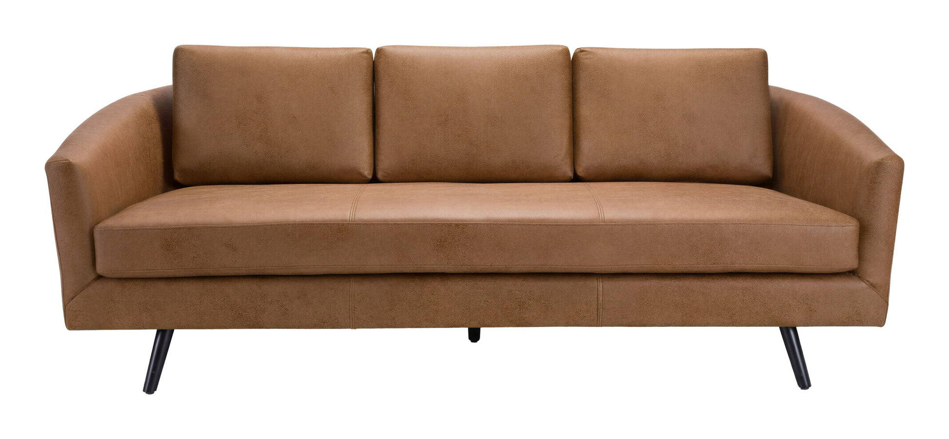 Sleek and comfy, the Divinity Sofa is wrapped in a durable vinyl with wood legs. With its curves and contours, this sofa can go many ways, modern, urban, boho, or glam.