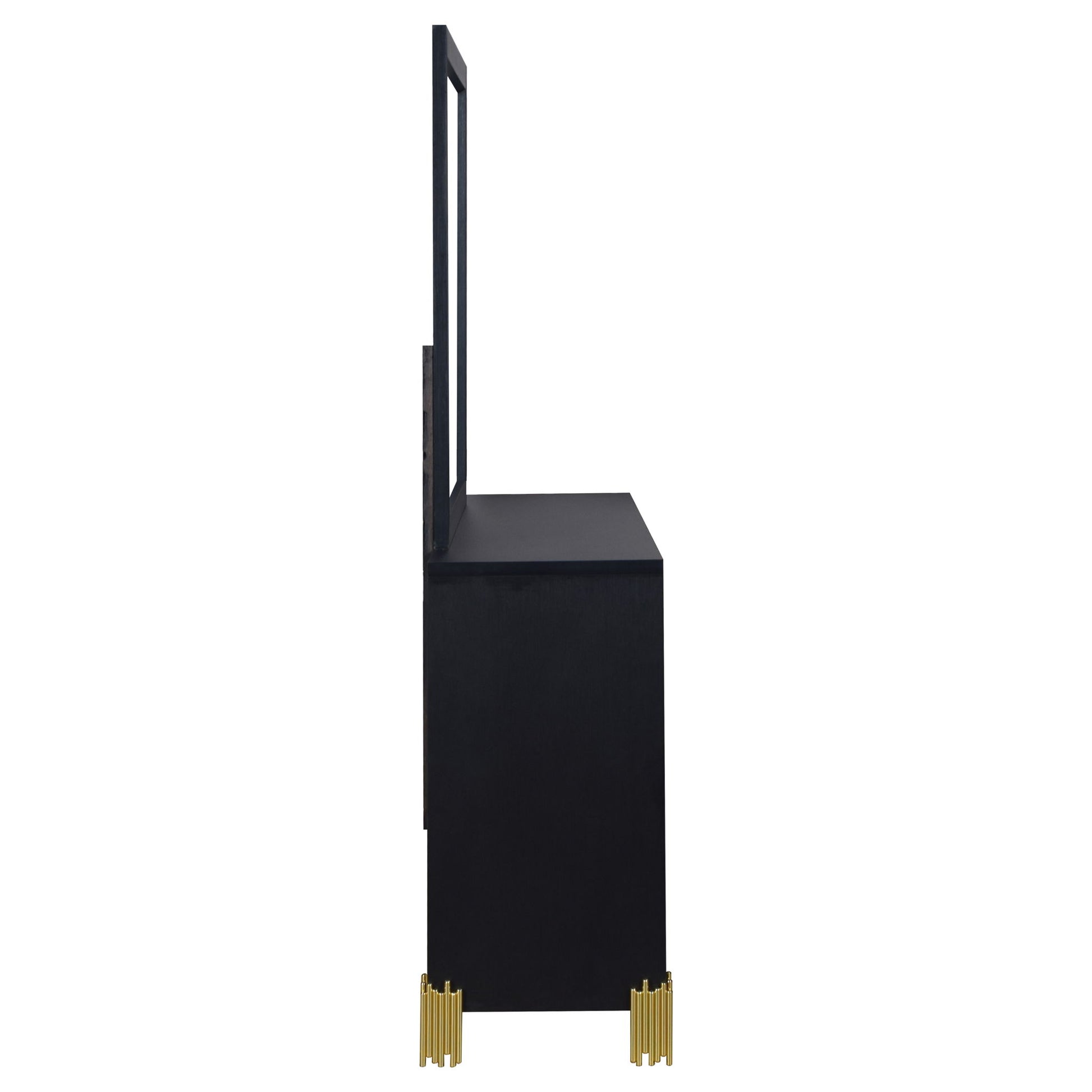 Introducing the Empire 6 Drawer Dresser in sleek black, a timeless addition to your bedroom decor. Crafted with durable eco-friendly materials and a sophisticated finish, this dresser exudes contemporary elegance. Its gleaming gold drawer pulls and feet evoke the enchanting allure of a city skyline at night. Inside, the drawers are meticulously crafted with English dovetail joinery and ball bearing glides, ensuring smooth and reliable operation. Enhance your bedroom with the Empire 6 Drawer Dresser, where quality meets style for a truly captivating ambiance.