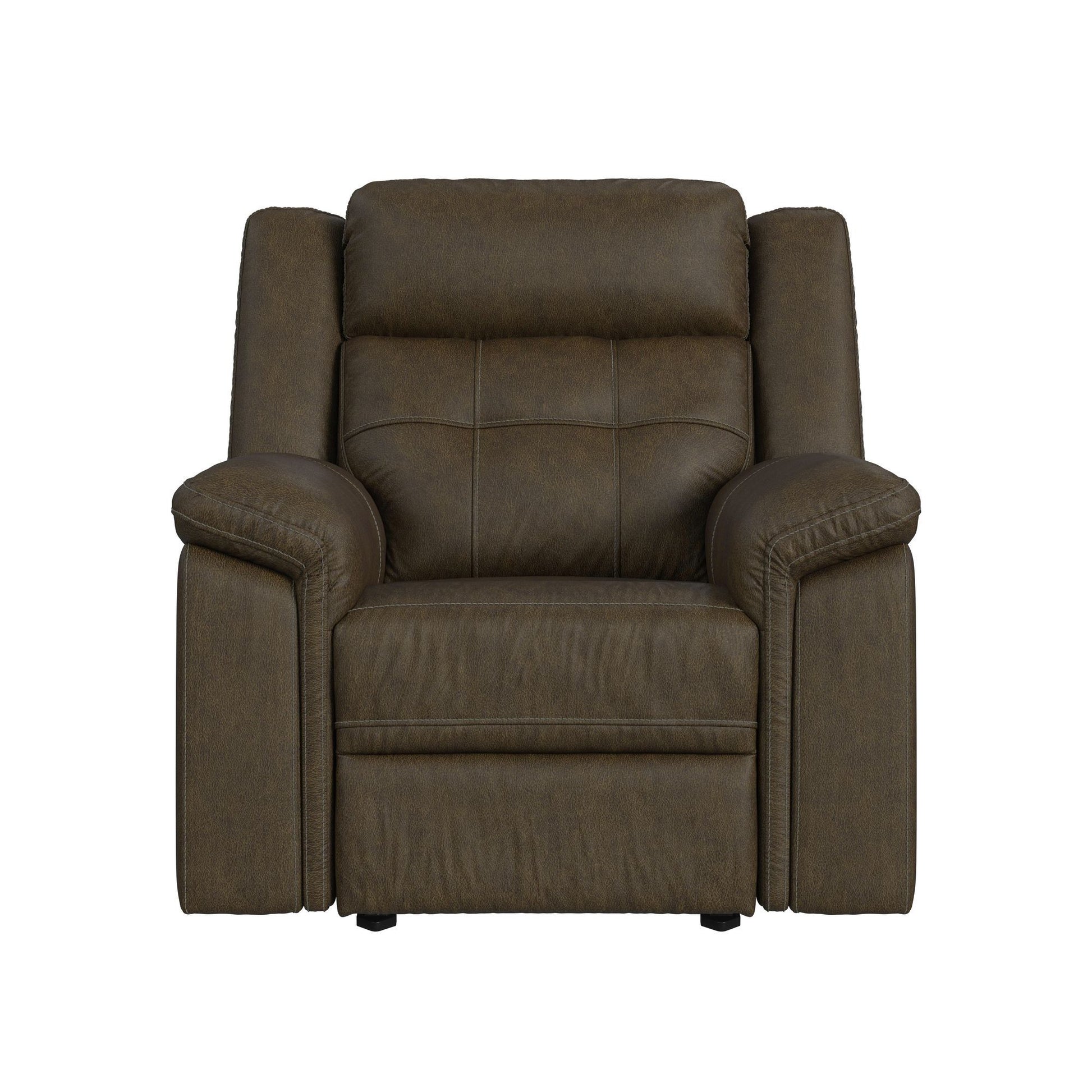 Bring comfort and style to your living room with the Epic Rocker Recliner. Its manual reclining feature lets you enjoy relaxation for hours in a comfortable position. The 100% polyester upholstery is easy to clean, simplifying maintenance and ensuring lasting durability, while the decorative tufting adds a timeless stylistic touch. The pillow-top armrests are ideal for lounging, while the supportive cushioning cradles you in comfort. For a quality recliner that feels as good as it looks, the Epic Rocker Recliner delivers.