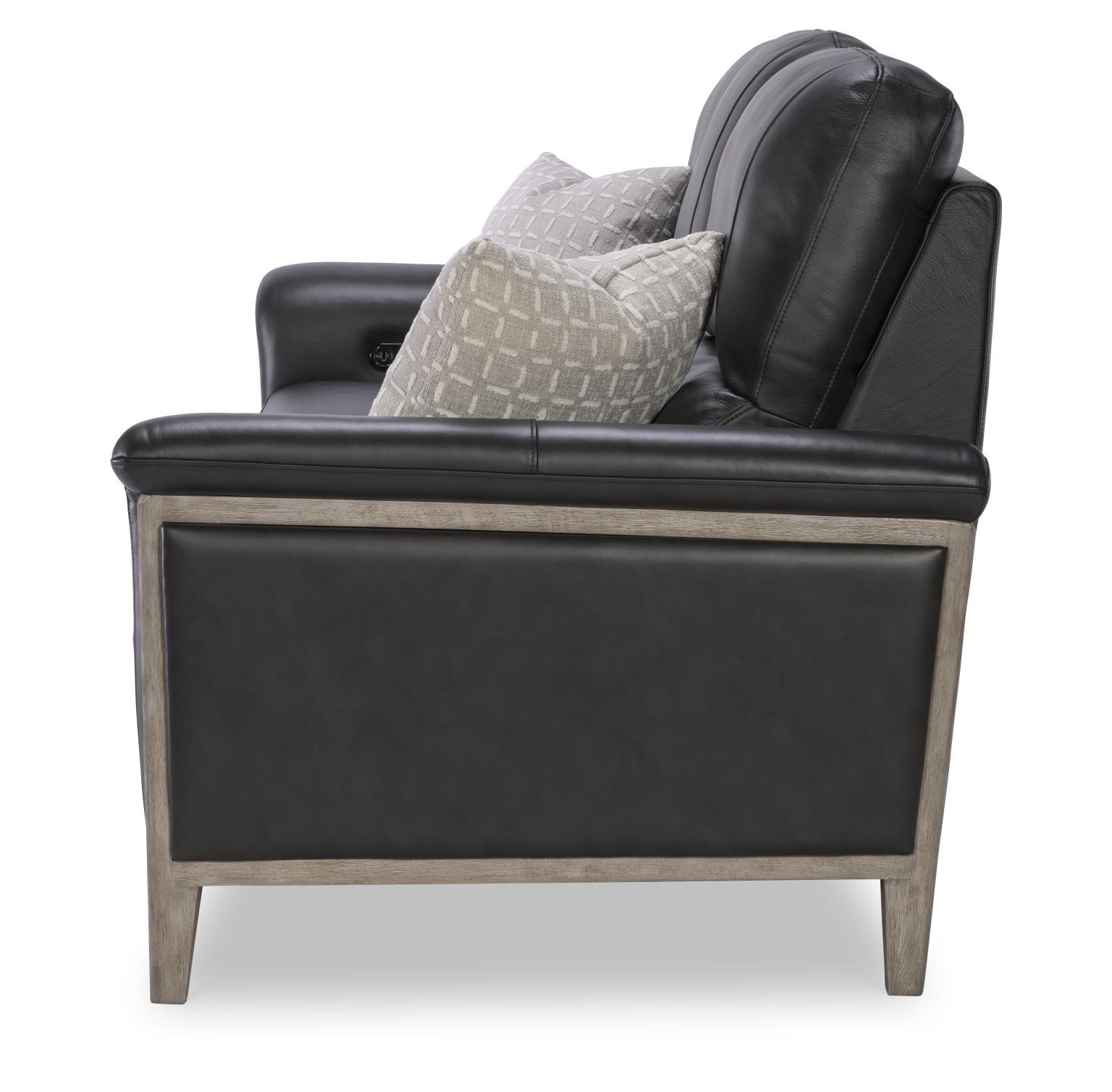 A 3-piece high-leg sofa group with a tastefully integrated pull-down console with drink holders/USB charging. These "transformers" are hidden and have the look of a luxury car feature. Also included is a wood console with swivel table and two 18 inch fabric accent pillows.