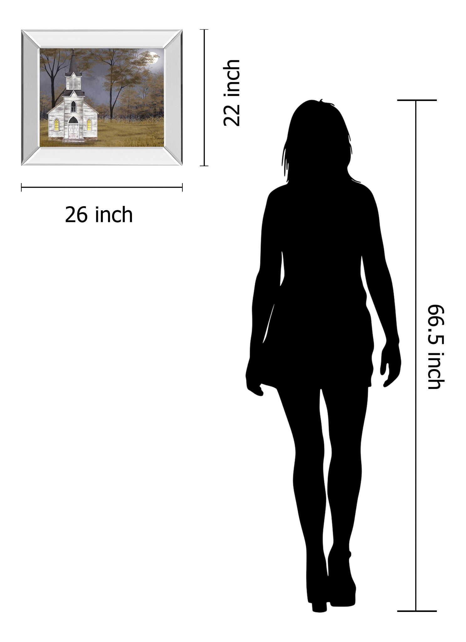 Evening Prayer invites you into a tranquil moment where a quaint church stands quietly under the soft glow of twilight. The muted colors of gray, brown, and yellow blend seamlessly with the delicate moonlight filtering through the trees, evoking a serene and reflective atmosphere. Encased in a sleek mirrored frame crafted from premium real glass, this piece not only protects but enhances the subtle details and vibrant hues, making it a perfect addition to any living room or office seeking a peaceful, elegant touch. Expertly made in the USA, it combines timeless charm with modern sophistication, ready to bring calm and beauty to your space.