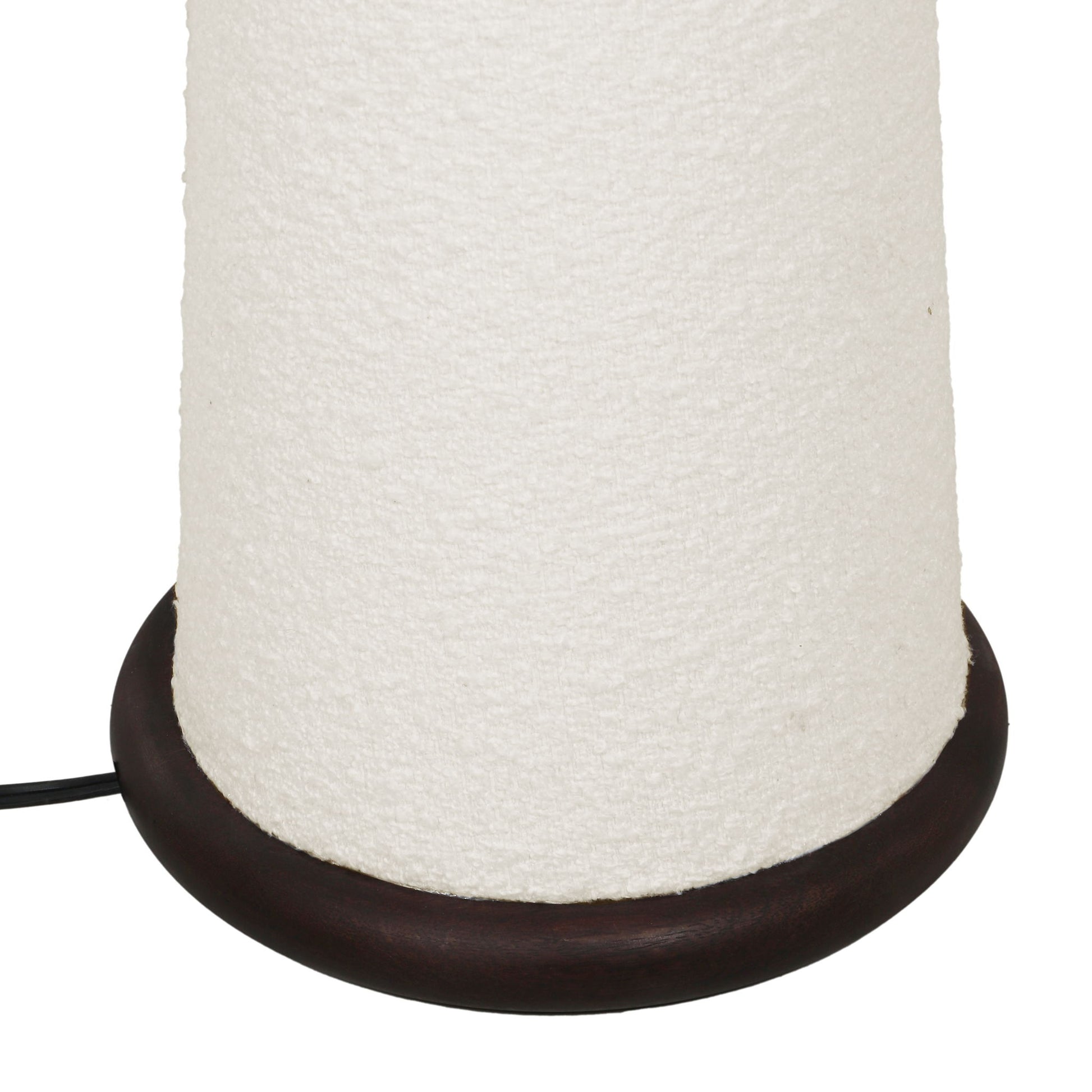Bring a touch of mid-century charm to your decor with the Faith Boucle Table and Floor Lamps. These pieces feature a fully-upholstered, trendy silhouette in cream boucle that sits atop a sturdy wood base, blending texture and warmth. The conical lampshade completes the design, effortlessly dressing up any corner of your home with a sophisticated and modern flair.