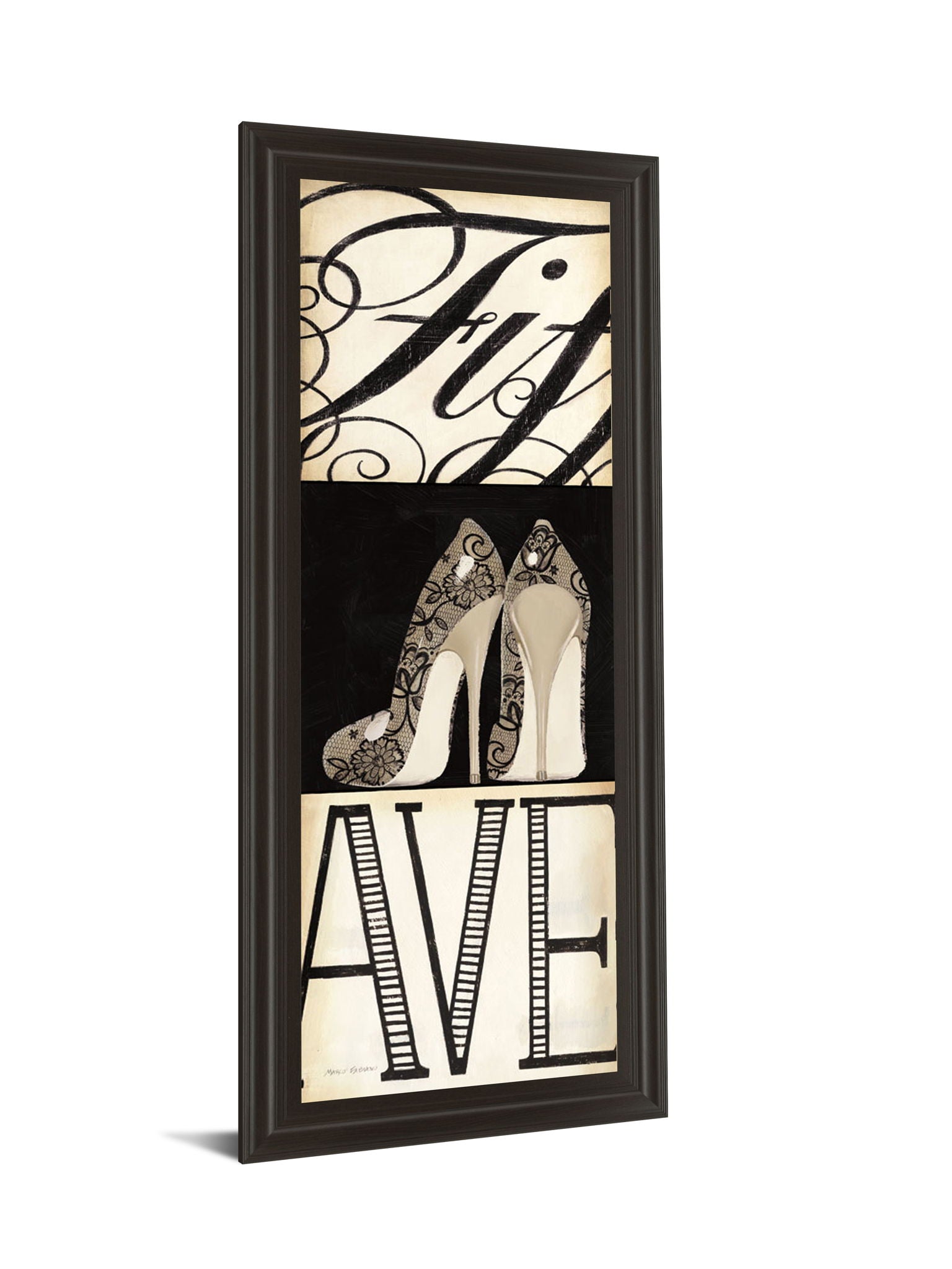 Step into a world where fashion meets art with this captivating piece featuring elegant high-heeled shoes adorned with intricate floral patterns. Set against a backdrop of stylish, vintage-inspired typography that spells out "Fifth Avenue," this artwork blends sophistication and modern design seamlessly. Encased in a rich dark chocolate frame with premium real glass, it brings depth and a touch of timeless elegance to your living room, bedroom, or office. Crafted with expert care and ready to hang, this framed wall art is a perfect statement piece that elevates any space with its chic and refined aesthetic.