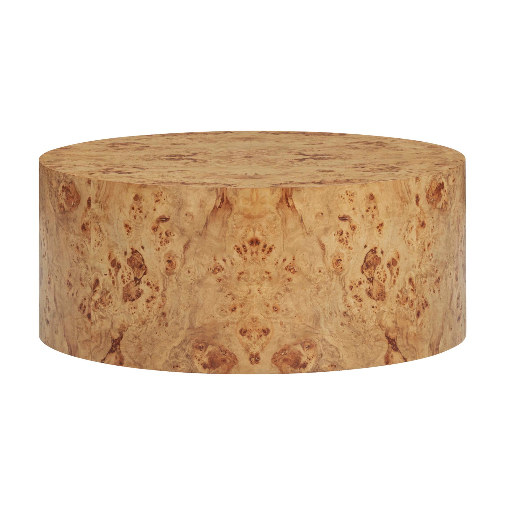 Grounded in organic warmth and visual rhythm, the Fig Natural Burl tables bring sculptural serenity to any room. Wrapped in richly grained burl veneer with bookmatched panels and a seamless, weighty base, each drum silhouette is a quiet statement piece, made entirely unique by the natural variation in burl wood.