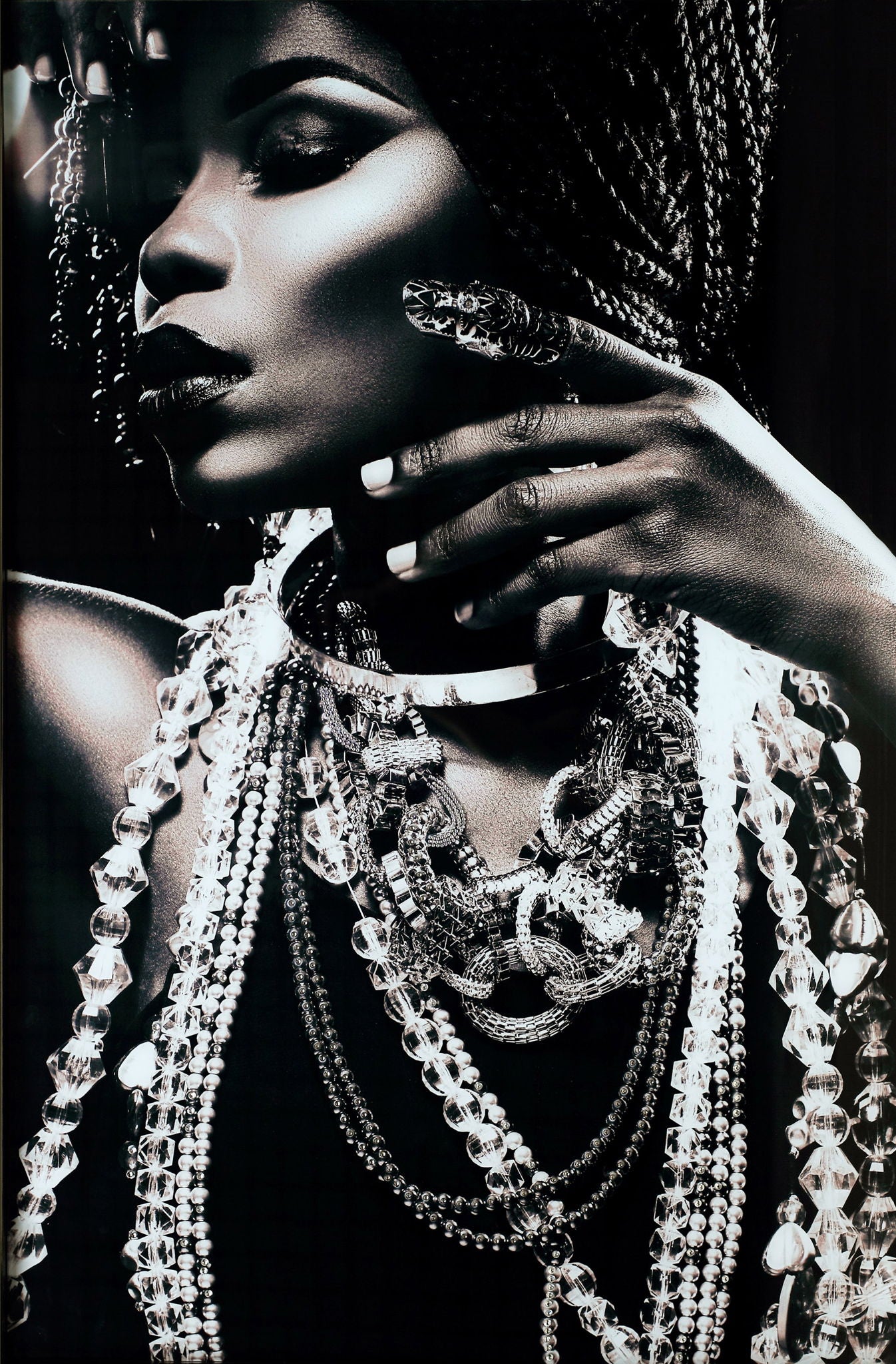 "Metallic Magic" captures the striking elegance of fashion through a mesmerizing photograph printed beneath tempered glass. This contemporary piece features hand-embellished details that add depth and shine, creating a sleek, dimensional finish. Crafted with durable tempered glass, it offers strength and safety while maintaining a clean, frameless look. Ready to hang with sawtooth hangers, it brings a sophisticated touch to living rooms, bedrooms, or offices. With each purchase, a meal is donated to a hungry American child, blending art with meaningful impact.
