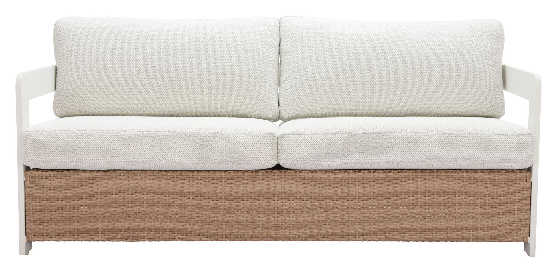 Revitalize your outdoor area with the Gelo Sofa White & Brown, an exquisite example of modern design. Crafted from high-quality Olefin, aluminum, and polyethylene, this sofa strikes a perfect balance between aesthetics and functionality, providing a versatile seating option for patios, decks, or gardens. Its chic and contemporary style ensures it will be a standout feature in any outdoor setting.