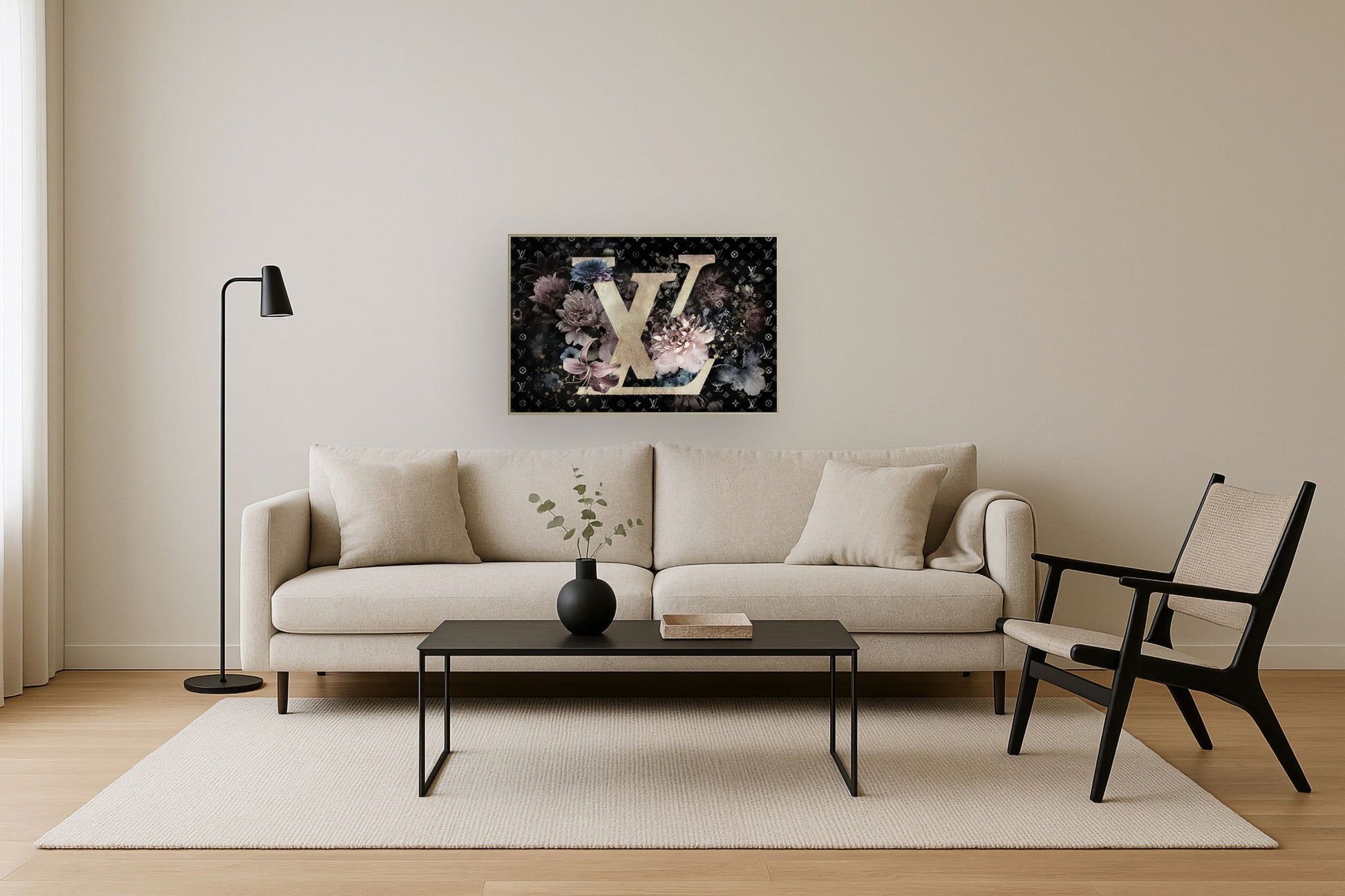 This striking "Floral Luxe Monogram Art" piece blends elegant typography with lush floral imagery to create a captivating focal point for any space. The artwork features a glossy finish with hand-applied foil and textured rock accents, adding depth and a luxurious shimmer that catches the light beautifully. Framed in a refined gold polystyrene frame, this contemporary graphic art piece is ready to display and perfect for living rooms or offices seeking a sophisticated, artistic statement.