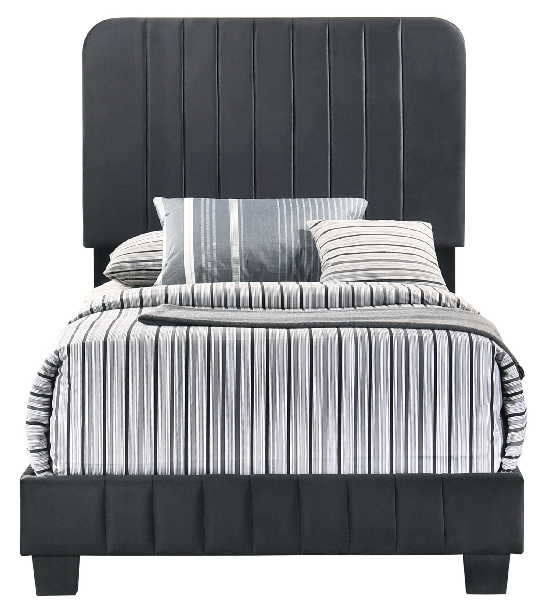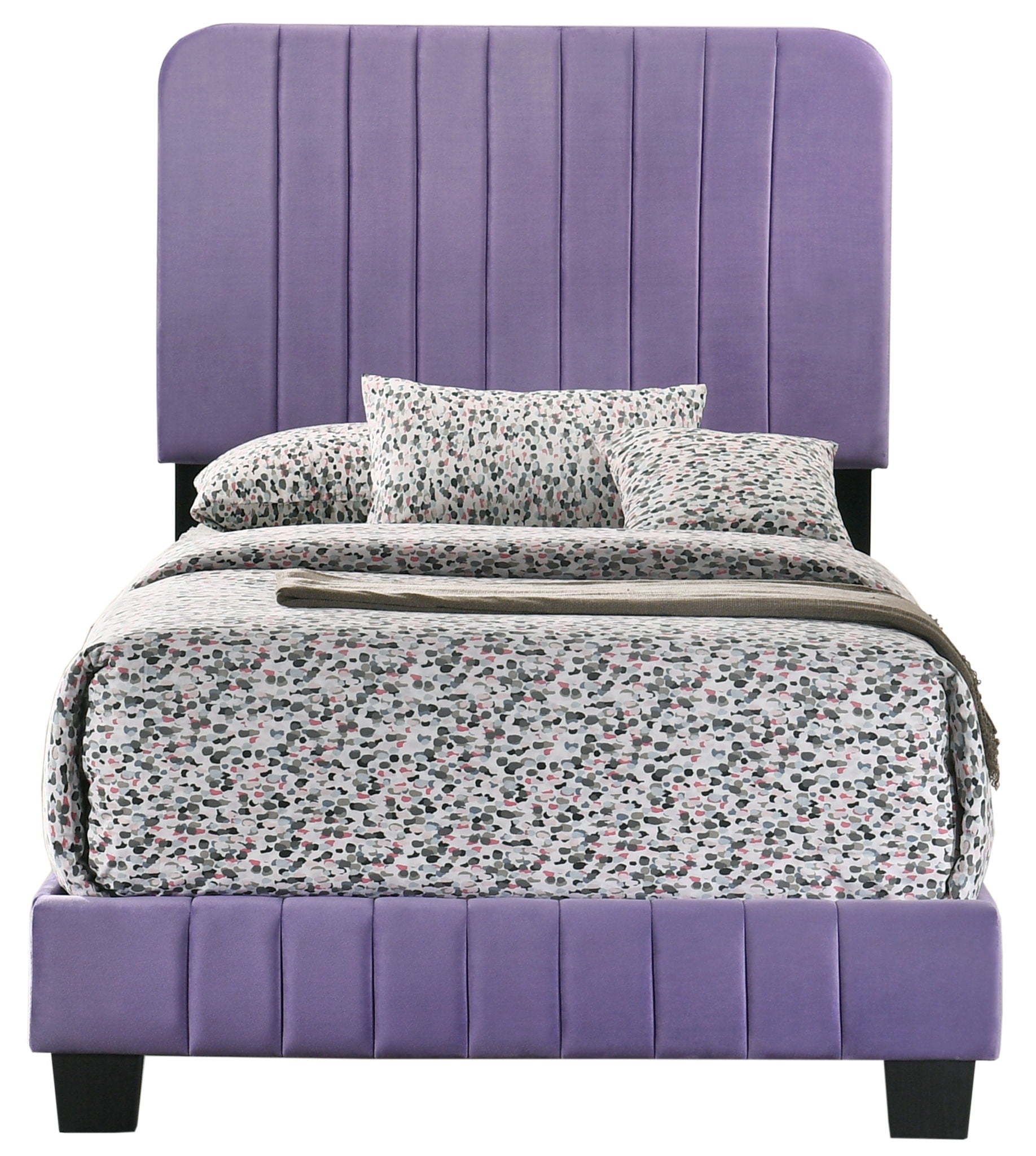 The Lodi Bed from Glory Furniture presents a modern aesthetic that blends functionality with a clean and minimalist style. Dressed in a striking tone, the bed features channel tufted velvet upholstery, which adds depth and sophistication to your bedroom atmosphere. Its thoughtfully crafted frame not only provides structural integrity but also complements a variety of decorative schemes, making it versatile for different tastes. This bed offers generous sleeping space while fitting seamlessly into various room dimensions. The elegant wooden legs and slats provide reliable support, ensuring the bed is both durable and visually appealing. Whether you're reimagining your primary bedroom, updating a guest space, or furnishing a small apartment, this full bed encapsulates the blend of style and functionality, making it an ideal choice for any bedroom.