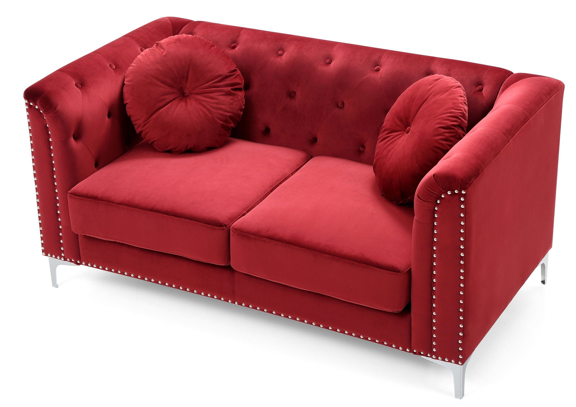This luxurious loveseat is an ideal addition to your living space, designed to provide both comfort and style. Adorned with rich velvet upholstery, it offers a striking appearance that complements a wide range of interior themes. With overall dimensions of 31"H X 62"W X 34"D, this piece is perfect for tight spaces, allowing you to enjoy ample seating without sacrificing precious room. It comes with a cozy throw pillow that enhances your lounging experience, supporting you during those moments of relaxation. Engineered for lasting comfort, the loveseat features pocketed coil cushions that adapt to your body, making each seating experience truly enjoyable. The inside arms and back are embellished with exquisite button tufting, providing a touch of visual interest that elevates its overall design. Additionally, this product is conveniently packaged for effortless delivery, ensuring you can quickly incorporate this beautiful piece into your home without any hassle. Welcome this elegant loveseat into your environment and enjoy its blend of functionality and aesthetic appeal.