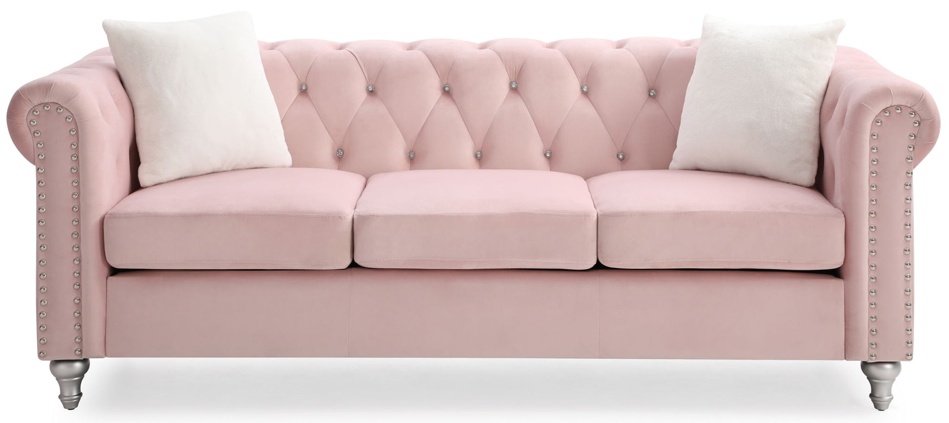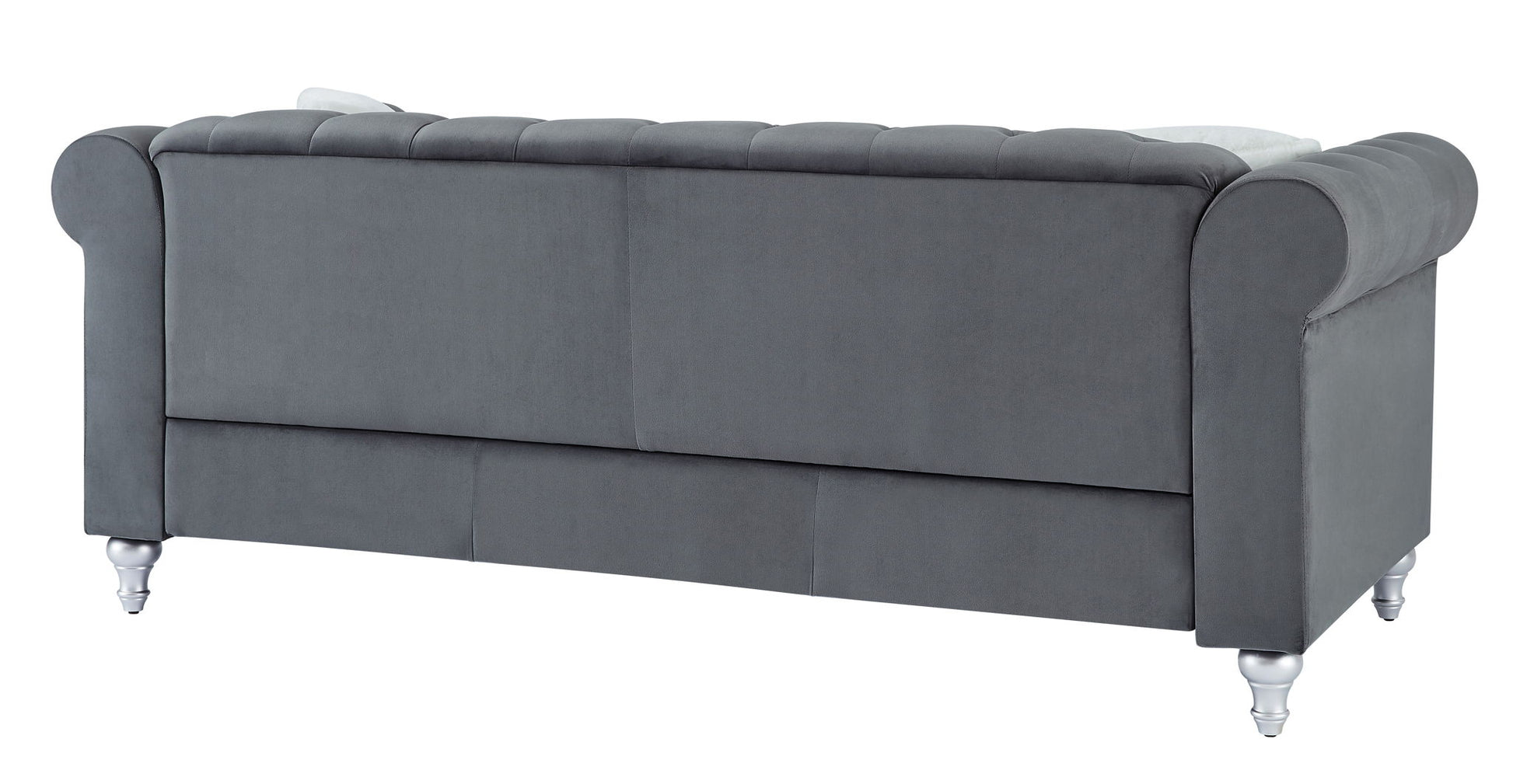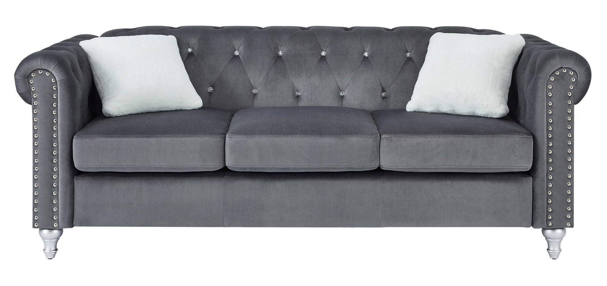 This inviting sofa embodies a harmonious blend of refined design and function, perfectly enhancing various living spaces. The soothing tone seamlessly complements an array of decor styles, while the jeweled tufted micro suede velvet cover introduces a rich, tactile texture that encourages relaxation and comfort. It stands as a focal point in any room, inviting gatherings and conversation. With dimensions of 30"H x 83"W x 34"D, this piece provides ample seating for family and friends, making it an ideal choice for entertaining without occupying too much floor space. Crafted for durability, the sofa promises to deliver comfort and aesthetic appeal for years to come. The painted wood legs not only contribute to a contemporary look but also provide robust support for the entire structure. This versatile sofa balances practicality and visual charm, culminating in a perfect addition to enhance your living experience in any setting, ensuring you enjoy both style and comfort at home.