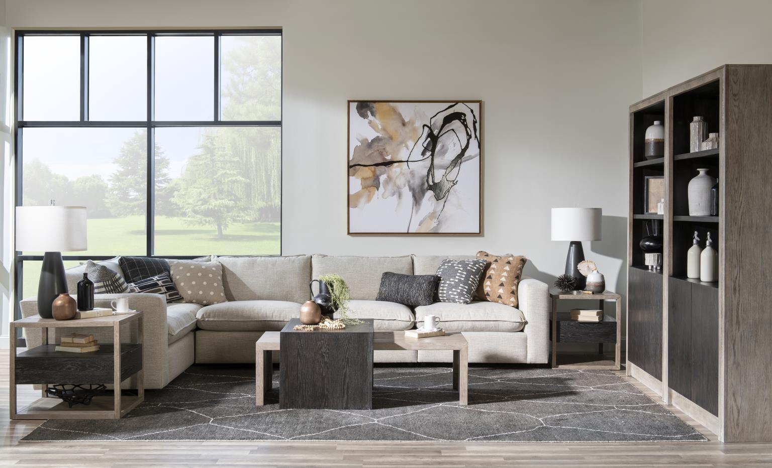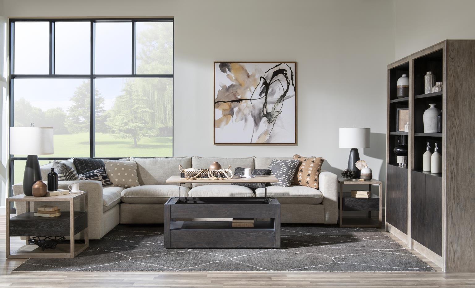 Inspired by aged and exposed elements, the Halifax collection offers modern rustic styled pieces with a relaxed feel. The dark Java finish contrasts beautifully with the lighter Flax finish. The tones match those of rugged and earthy hues found in nature. Clean shapes and simple lines mixed with classic furniture forms adds a unique spin on this total home collection.