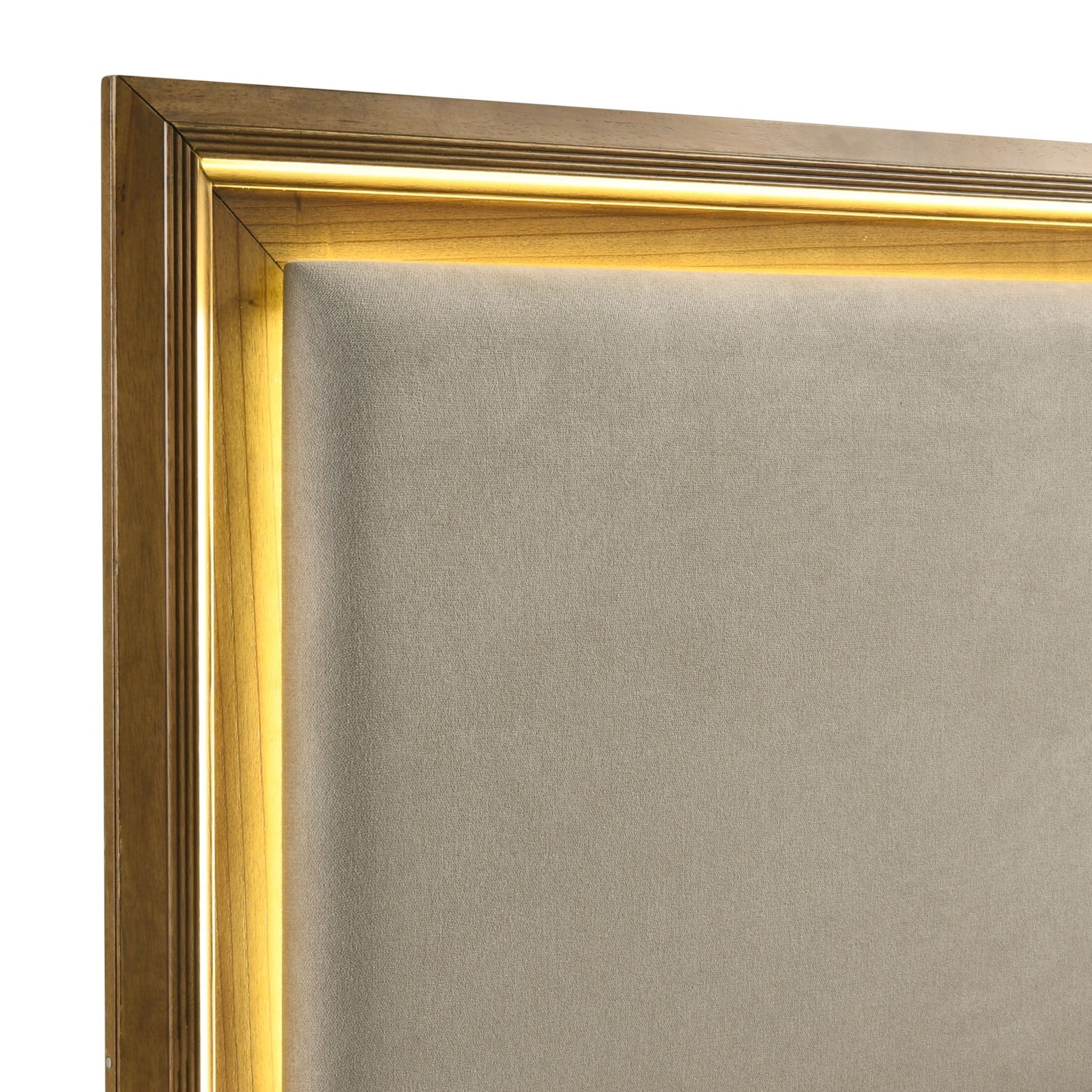 Harmony - Queen Upholstered Storage Bed With LED And Beige Fabric - Walnut