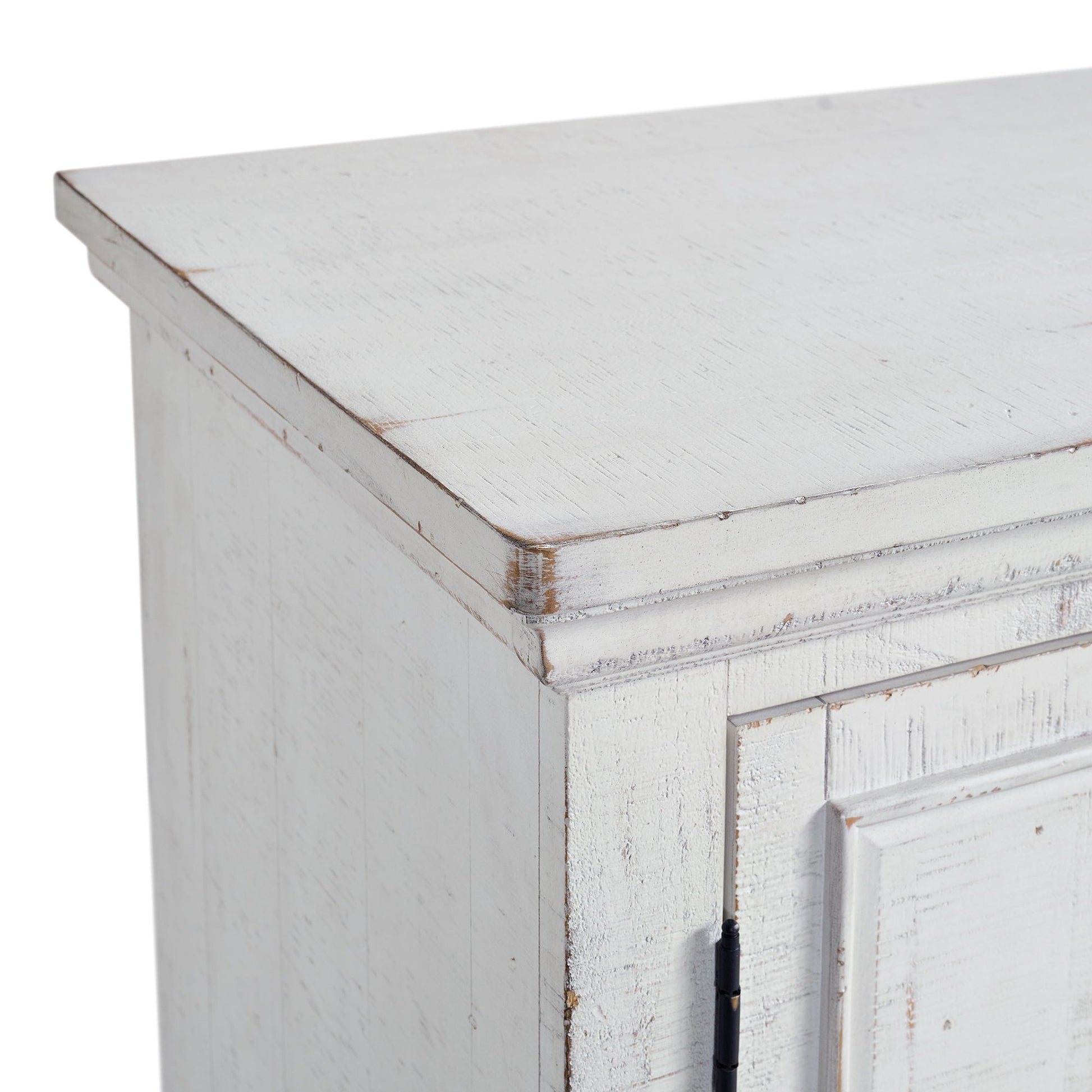 Accent your bedroom with the intricate style of the Heather 6-Drawer Dresser. Made with solid pine wood in an aged white finish, the sophisticated nature of this piece easily becomes a focal point in your space. The molding on the frame and beveled feet conveys timeless, traditional style, while sleek, black knobs on the drawers and cabinet doors create a clean contrast. French and English dovetailing denote skillful craftsmanship, while smoothly operating ball bearing glides are built for effortless utility. For an artistic and refined addition to your bedroom, choose the Heather 6-Drawer Dresser smart design.