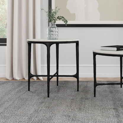 Hermas - Round Genuine Marble Top Metal End Side Table - White