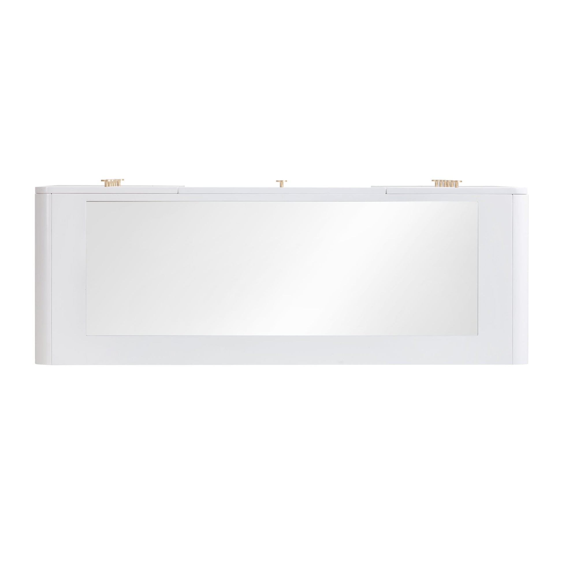 Introducing the Hollywood Vanity Desk: Your ultimate #GRWM station! Decked out with metal hardware and a top drawer lined for all your treasures, it's perfectly paired with the dazzling Lola vanity mirror for that extra sprinkle of Hollywood glam. This beauty boasts a spacious tabletop mirror to catch that good light, making your makeup pop and those selfies fire while ensuring cleanup is a breeze. With tons of drawers, including some shallow ones, it's all about keeping your products organized and easily accessible. For added versatility, the mirror can easily be disassembled or hung on the wall.