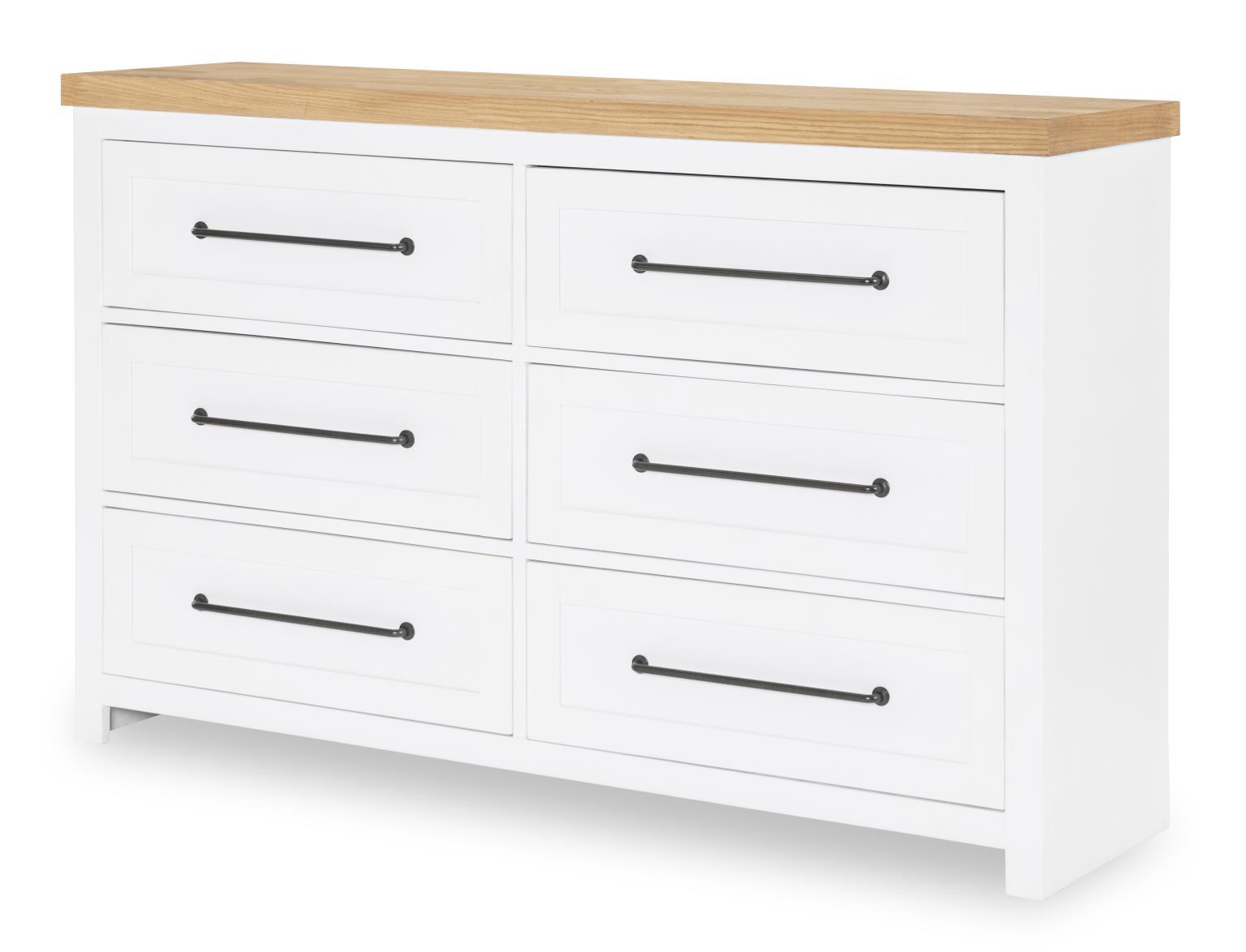 Horizons - 6 Drawers Dresser - Pure White / Natural Oak