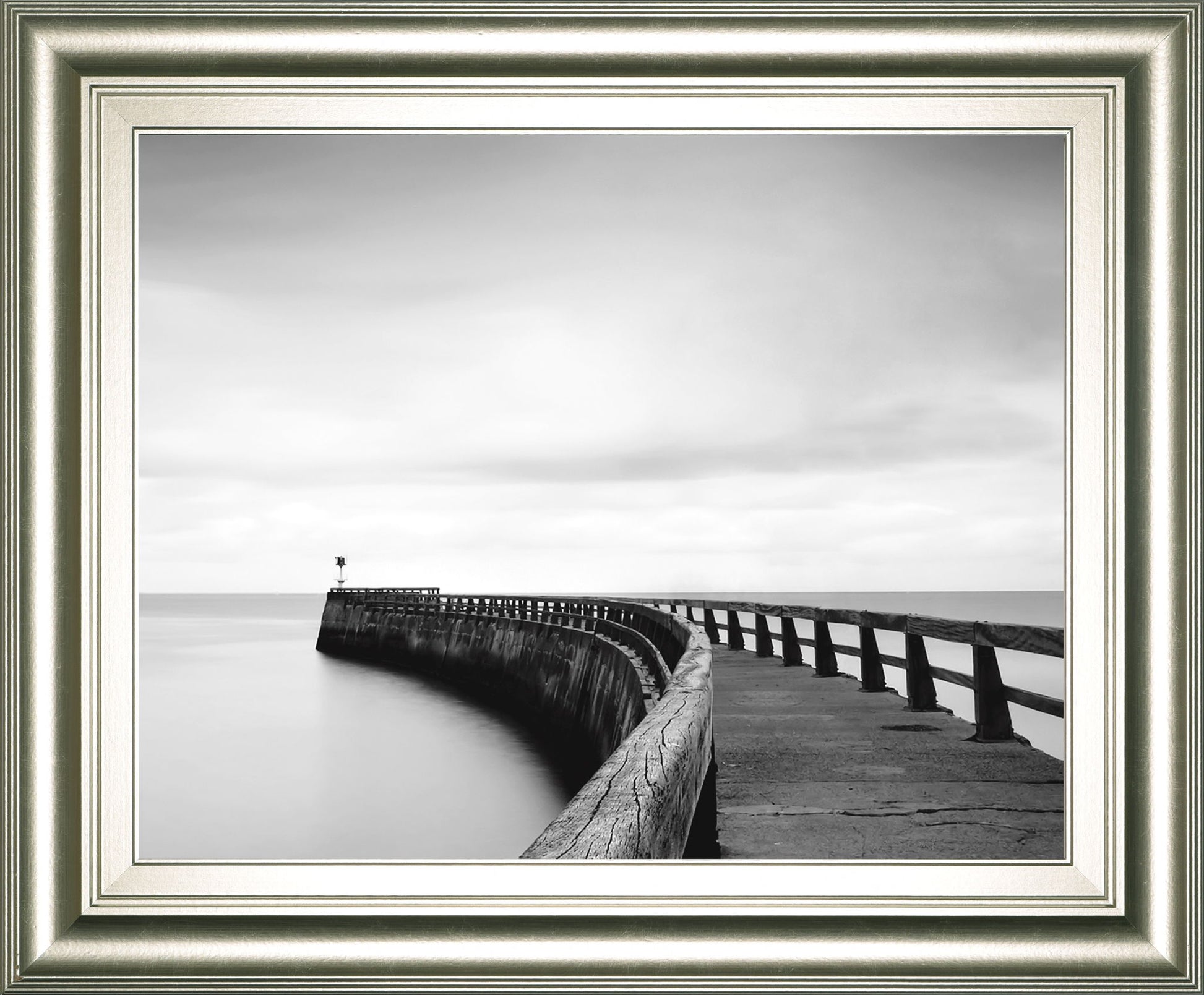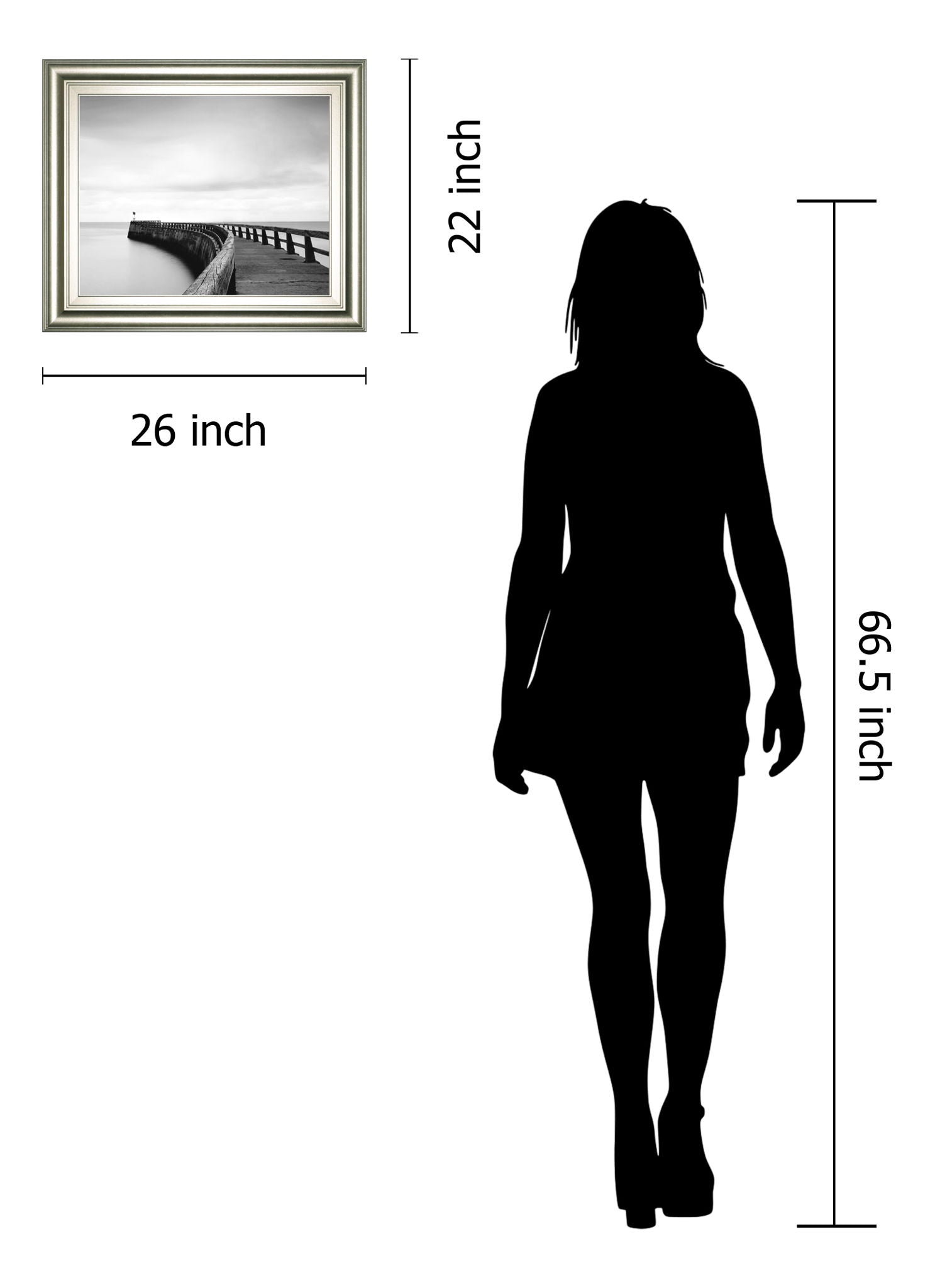 Step into a tranquil moment captured in black and white, where a weathered pier gently curves into a misty horizon. This serene coastal scene invites you to pause, breathe, and reflect on nature's quiet beauty. Encased in a sleek silver frame with crystal-clear glass, this piece adds a sophisticated touch to any living room, bedroom, or office. Crafted with premium materials and ready to hang, it effortlessly blends artistry and calm, transforming your space into a peaceful retreat.