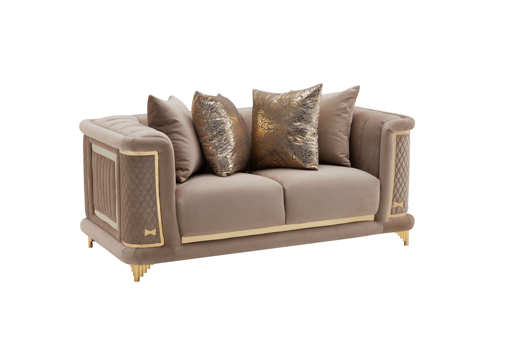 The Kate Loveseat exudes modern elegance with its refined design and luxurious finishes. Enhanced with eye-catching gold detailing and plush tufted upholstery, this loveseat combines comfort with high-end glamour. Its sleek, contemporary form beautifully complements the Kate Sofa, making it an ideal addition for a stylish and sophisticated seating area in your living room.
