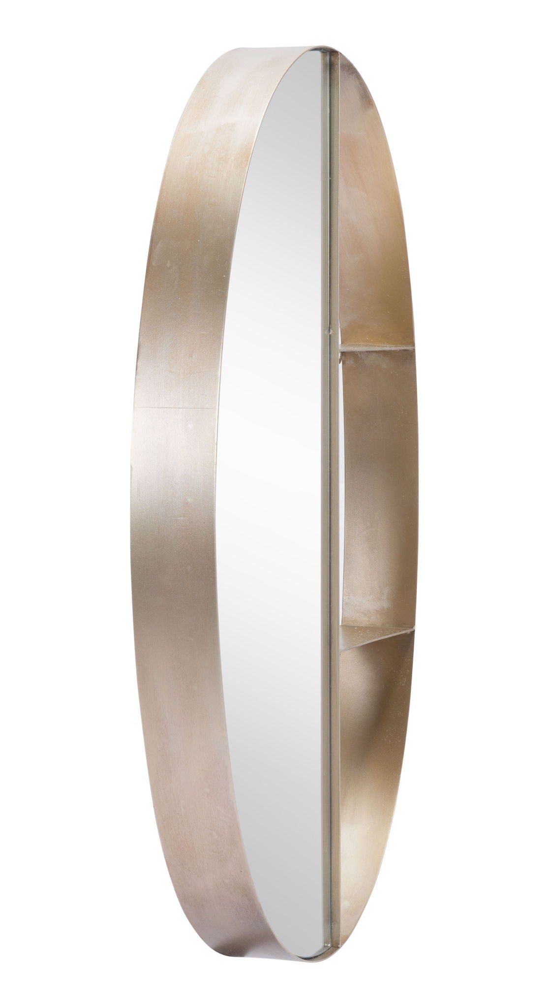 An antique bronze that will add a cool vintage shop vibe to any space. Perfect for your entryway, bedroom, living room, or any corner in need of some love. Its shelves allow you to add your favorite knick-knacks to the wall, while still opening up the space with the reflective mirror.